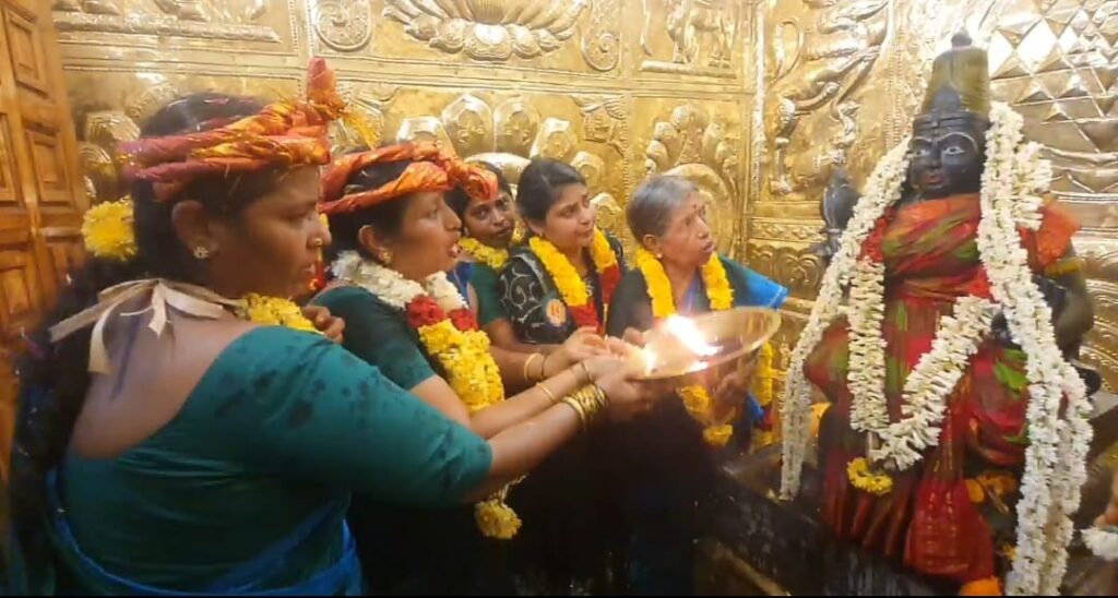 தமிழகத்திலேயே முதன்முறையாக பெண்களே யாகசாலை பூஜைகள் நடத்தி கலசத்திற்கு புனித நீர் ஊற்றி குடமுழுக்கு நடத்தினர்.