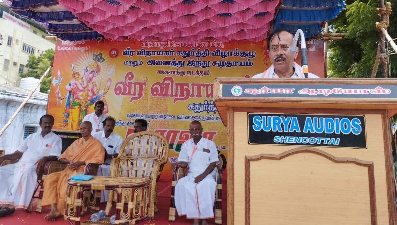 செங்கோட்டையில் விநாயகர் சிலைகள் ஊர்வலம் – பொதுக்கூட்டம்–பாஜக ஒருங்கிணைப்பு குழு அமைப்பாளர் எச்.ராஜா பங்கேற்பு