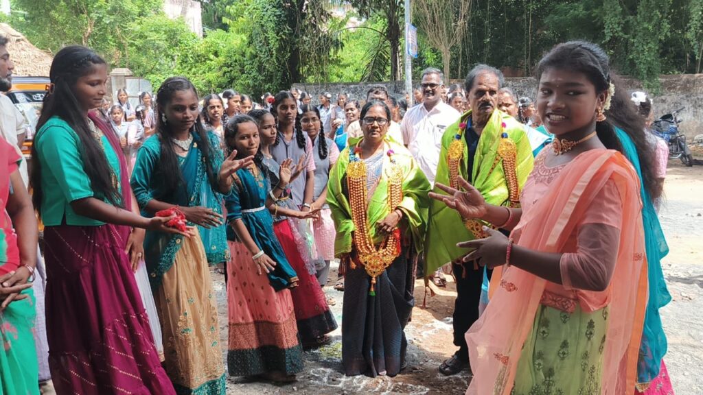 இந்நிலையில் தலைமை ஆசிரியை மணிமேகலைக்கு கடந்த ஐந்தாம் தேதி நடைபெற்ற ஆசிரியர் தின விழாவில் நல்லாசிரியை விருது வழங்கப்பட்டது. இதனை இப்பள்ளியில் பணியாற்றும் ஆசிரியைகள் மற்றும் மாணவிகள் உற்சாகமாக கொண்டாடினர். ஆக்கூர் கடை வீதியில் தலைமை ஆசிரியை மணிமேகலை அவரது கணவர் குணசேகரன் ஆகியோருக்கு மாலை அணிவித்த ஆசிரியர்கள் அவர்களை ஊர்வலமாக பள்ளியை நோக்கி அழைத்து வந்தனர்.