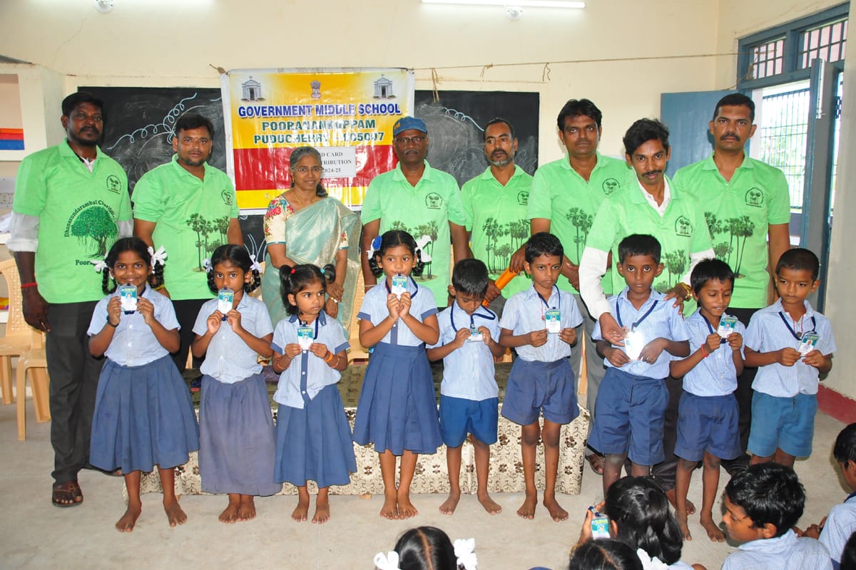 ஆசிரியை திருமதி.ராஜலட்சுமி அனைவரையும் வரவேற்றார். நிகழ்வில் பூரணங்குப்பம் தனசுந்தரம் சாரி டெபுள் சொசைட்டி நிறுவனர் பூரணாங்குப்பம் பனை ஆனந்தன் கலந்து கொண்டு மாணவர்களுக்கு அடையாள அட்டை வழங்கினார்,