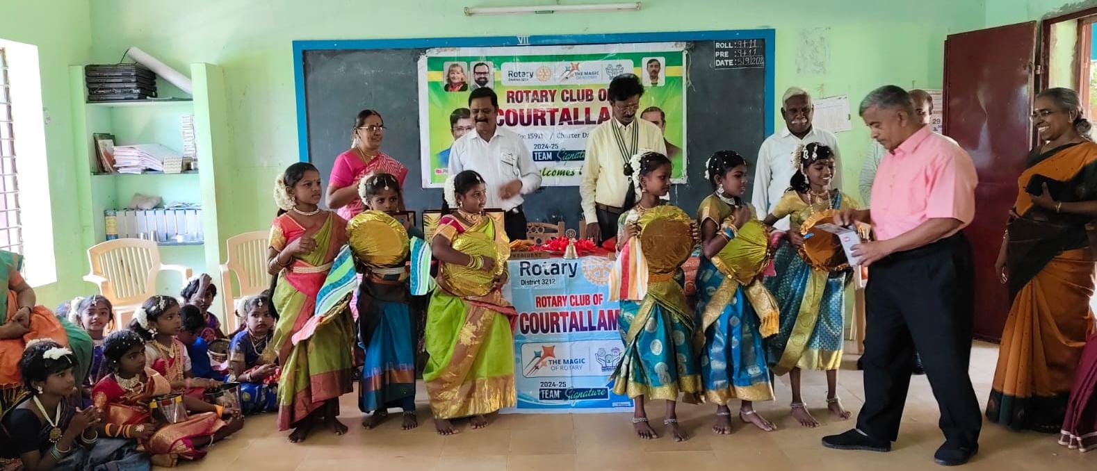கொண்டாட பட்டது. பள்ளி தலைமை ஆசிரியை தனலட்சுமி அனைவரையும் வரவேற்றார். குற்றாலம் ரோட்டரி தலைவர் கை. முருகன் தலைமையேற்றர் . ரோட்டேரியன்கள் கண்ணன் இறைவணக்கம் பாடினார்,