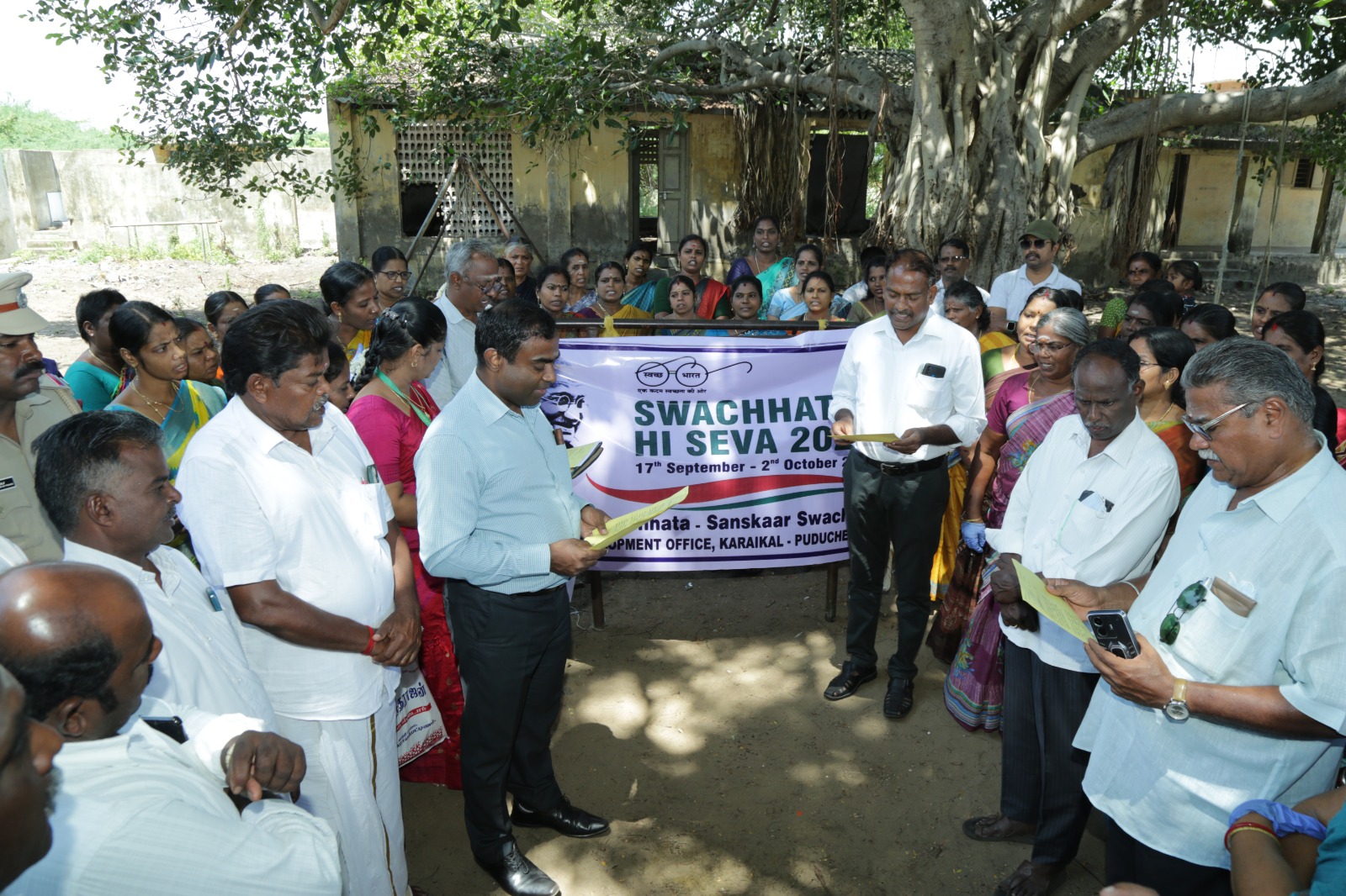 காரைக்கால் மாவட்ட நிர்வாகம் மற்றும் வட்டார வளர்ச்சி துறையின் மூலம் மத்திய அரசின் திட்டமான “ஸ்விச்சிதா ஹை சேவா” என்ற திட்டத்தின் மூலம் திருப்பட்டினம் கொம்யூன் கீழையூர் பஞ்சாயத்தை சேர்ந்த பட்டினச்சேரியில் அமைந்துள்ள மீனவ கிராமத்தில் அரசு ஊரக வளர்ச்சி இயக்கம் மாவட்ட ஊரக வளர்ச்சி முகமை வட்டார வளர்ச்சி அலுவலகம் மற்றும் திருப்பட்டினம் கொம்யூன்பஞ்சாயத்தும் இணைந்து இன்று காலை காரைக்கால் மாவட்ட ஆட்சியர் முனைவர் திரு. மணிகண்டன் இ ஆ ப அவர்கள் தலைமையில் மீனவர் கிராமத்தைச் சேர்ந்த மகளிர் மற்றும் வட்டார வளர்ச்சித் துறையின் கீழ் இயங்கும் சுய உதவி குழுவைச் சேர்ந்த மகளிர் ஒன்றினைந்து தூய்மை பணியில் ஈடுபட்டனர்.