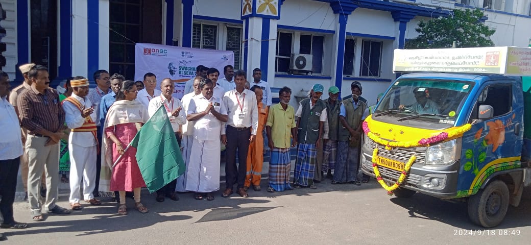 திருவாரூர் மாவட்ட ஆட்சித் தலைவர் அவர்களின் வழிகாட்டுதல்படி காரைக்கால் காவேரி அசட் ஓஎன்ஜிசி சமூக பொறுப்புணர்வு திட்டத்தின் கீழ் சுற்றுச்சூழல் மாசுபாட்டை ஏற்படுத்தும் “ஒரு முறை பயன்படுத்தும் நெகிழி” பயன்பாட்டைக் கட்டுப்படுத்தும் வகையில் திருவாரூர் மாவட்டத்தில் முன்னோடியாக தண்டலை ஊராட்சியை “ஒருமுறை பயன்படுத்தும் நெகிழி இல்லா ஊராட்சி மண்டலமாக” மாற்றும் வண்ணம் நெகிழி சேகரிப்பு மற்றும் விழிப்புணர்வு பிரச்சாரத்தை 18.09.2024 அன்று காலை மாவட்ட ஆட்சித் தலைவர் சாருஸ்ரீ கொடியசைத்து துவக்கிவைத்தார்.