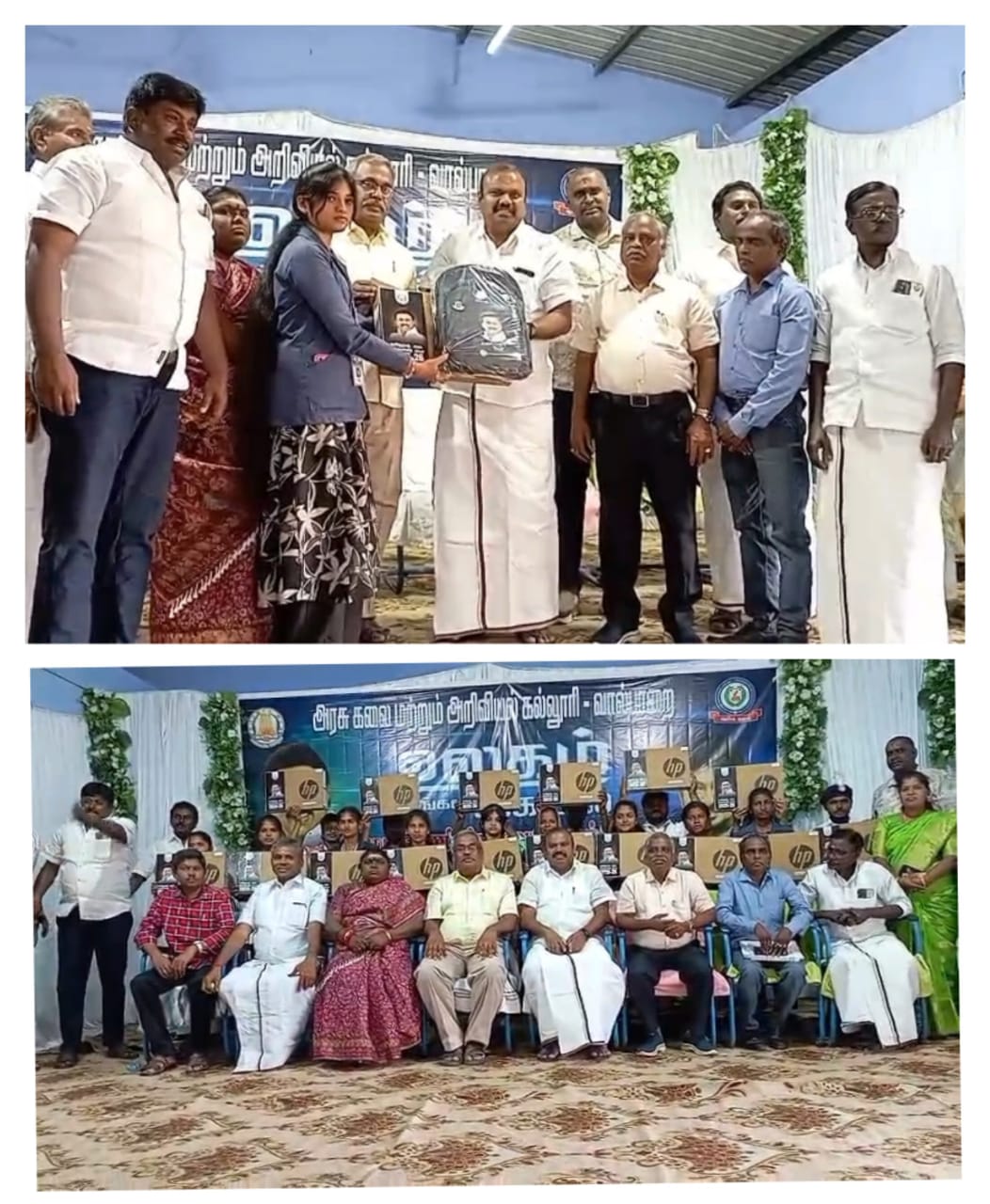கோவை மாவட்டம் வால்பாறையில் உள்ள அரசு கலை மற்றும் அறிவியல் கல்லூரியில் இளநிலை மூன்றாம் ஆண்டு பயிலும் சுமார் 266 மாணவர்களுக்கு தமிழக அரசின் மடிக்கணினி வழங்கும் விழா கல்லூரியின் முதல்வர் இரா.கோபி தலைமையில் நடைபெற்றது இவ்விழாவில் பொள்ளாச்சி பாராளுமன்ற உறுப்பினர் ஈஸ்வர சாமி கலந்து கொண்டு மாணவர்களுக்கு மடிக்கணினி வழங்கி சிறப்பித்தார்.