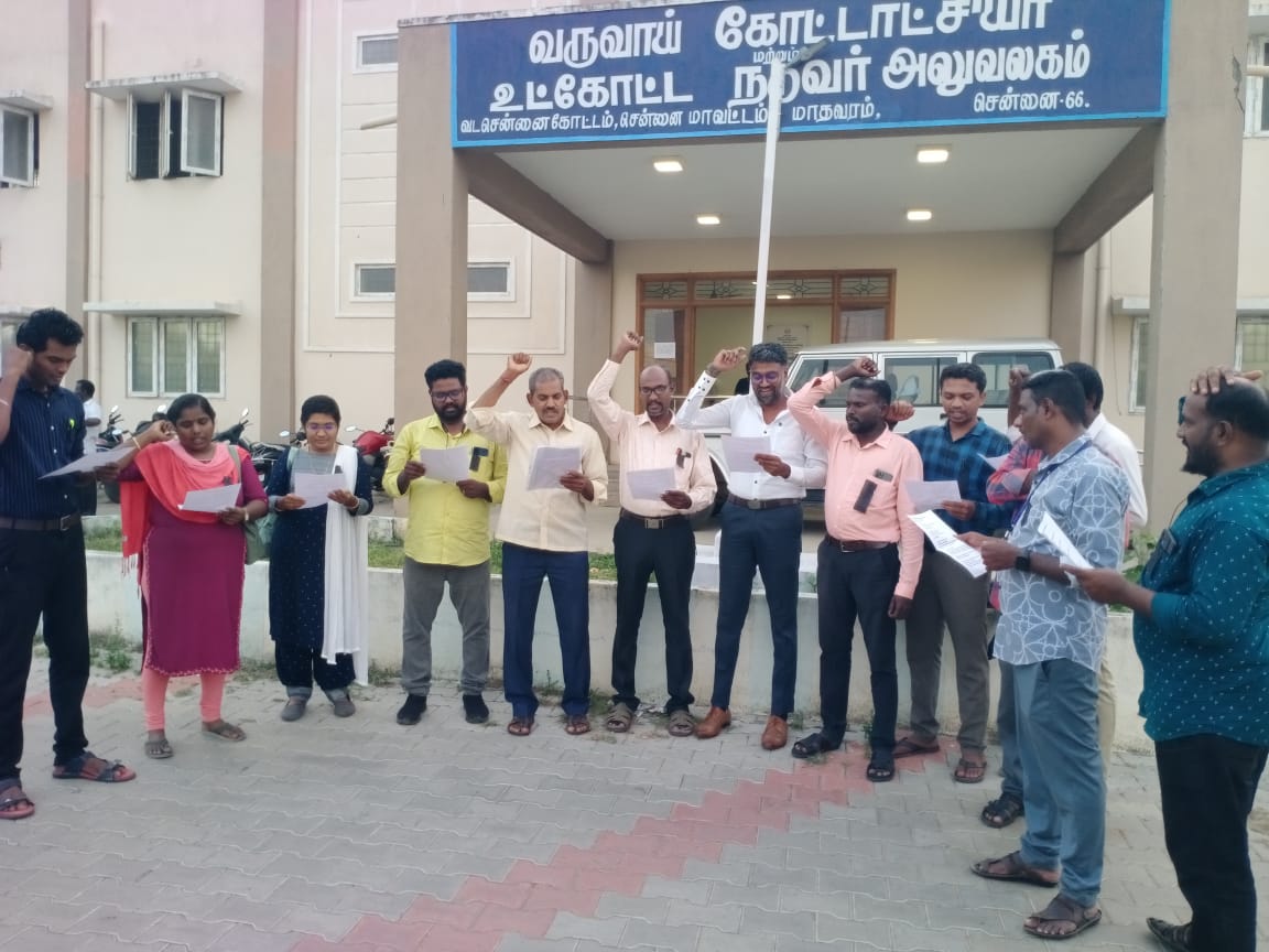 வடசென்னை கோட்டாட்சியர் அலுவலகத்தில் கிராம அதிகாரிகள் ஆர்ப்பாட்டம்.