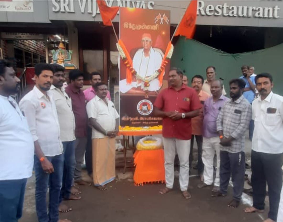 நிறுவனத்தலைவர் இராம. கோபாலனின் 98 வது பிறந்தநாள் தின விழாவை முன்னிட்டு நகரின் இதய பகுதியான தேனி நேரு சிலை அருகில் அவரது திருவுருவப்படத்திற்கு மாவட்டத் தலைவர் முருகன் தலைமையில் மாவட்ட செயலாளர் உமையாராஜன் மாவட்டத் துணைத் தலைவர் திலகராஜ் தேனி நகரத் தலைவர் மணிகண்டன் மற்றும் நகர் ஒன்றிய பொறுப்பாளர்கள் அனைவரும் மலர் தூவி மரியாதை செலுத்தி அங்குள்ள பொதுமக்களுக்கு இனிப்புகள் வழங்கியும் இந்து முன்னணியின் கொள்கையான சிறுபான்மை இன மக்களான முஸ்லிம் கிறிஸ்துவ ஆலயங்களில் சிறப்பு தரிசனம் என்பதே கிடையாது அங்கு கோடீஸ்வரரும் அன்றாட காட்சியும் ஏழை எளியவர்கள் ஒரே இடத்தில் இருந்து கடவுளை வணங்குகிறார்கள் ஆனால் நமது இந்து கோவிலில் கட்டண தரிசனம் விஐபி தரிசனம் என்று கட்டணங்கள் வசூல் செய்தும் பணம் கொடுப்பவர்களுக்கு சாமி இருக்கும் கருவறை அருகே நிற்க வைத்து சாமிக்கு போட்ட மாலையை எடுத்து அவருக்கு போட்டு அவரை தெய்வமாக வணங்கும் பூசாரிகளால் ஏழை எளிய மக்கள் பொது தரிசனத்தில் கட்டணம் இல்லாமல் தரிசிக்கும் போது அவர்களை வேகமாக கையைப் பிடித்து இழுத்து தரிசித்தது போதும் வெளியே போ என்று கூறும் அறநிலையத்துறை அதிகாரிகளை கண்டித்து நமது நிறுவனத் தலைவர் இராமகோபாலன் கோவில்களில் கட்டண தரிசனத்தை ரத்து செய்ய வேண்டும் என பல்வேறு போராட்டங்களை நடத்தியது குறித்து பொதுமக்களுக்கு புரியுமாறு விளக்கி பேசினார்கள் மேலும் கடவுளுக்கு முன் தெய்வங்களை வணங்க வரும் அனைவரும் ஒன்றே எனவே கட்டண தரிசனத்தை ரத்து செய்ய வேண்டும் என அவர் பிறந்த நாளில் நாங்கள் இந்து அறநிலைத்துறை அதிகாரிகளுக்கும் ஆளும் திமுக அரசுக்கும் கோரிக்கை வைக்கிறோம் இவ்வாறு பிறந்தநாள் கூட்டத்தில் வலியுறுத்தி பேசினார்கள்