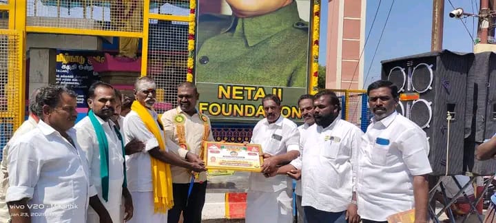 இளைஞர்கள் சிலம்பம் விளையாடினார்கள் நேதாஜி பவுண்டேன் நிர்வாகிகளுக்கு சான்றிதழ் வழங்கப்பட்டது பொதுமக்களுக்கு அன்னதானம் வழங்கப்பட்டது.