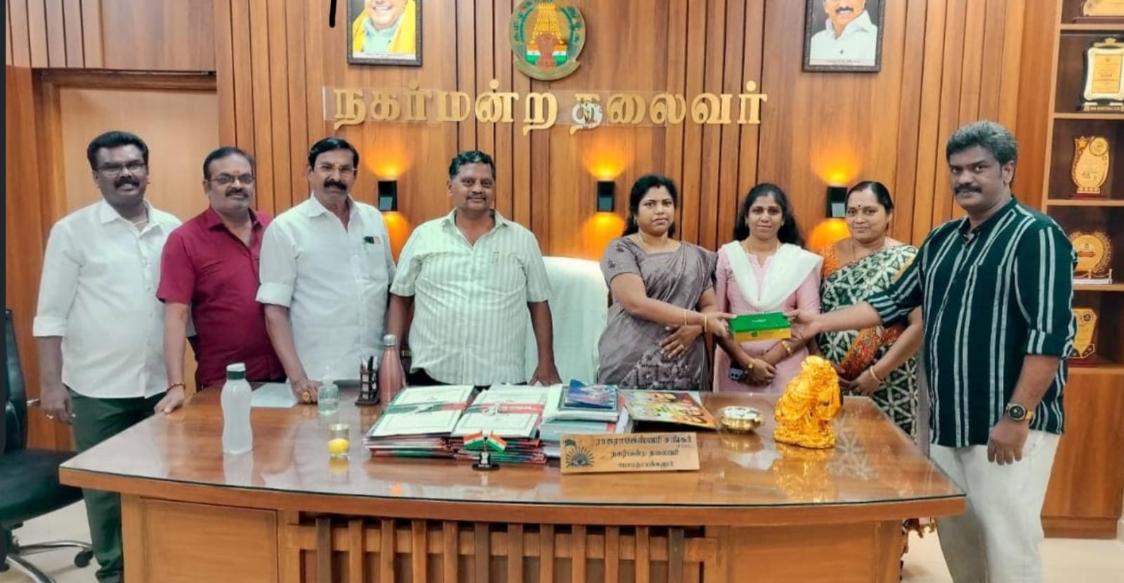 போடி நகராட்சி நகர் மன்ற தலைவருக்கு பிறந்த நாள் வாழ்த்து கூறிய வடக்கு மாவட்ட திமுக ஜ.டி.விங் தலைவர் தேனி மாவட்டம் போடிநாயக்கனூர் நகராட்சி நகர் மன்ற தலைவர் ராஜராஜேஸ்வரி யின் பிறந்த நாளையொட்டி தேனி திமுக வடக்கு மாவட்ட ஜ.டி.விங் தலைவரும் போடி நகராட்சி நகர் மன்ற கவுன்சிலருமான மகேஸ்வரன் ஏலக்காய் மாலை கொடுத்து தாங்கள் பல்லாண்டு காலம் வாழ வேண்டும் என மனதார வாழ்த்தினார் உடன் நகர் மன்ற தலைவரின் கணவரும் திமுக தலைமை செயற்குழு உறுப்பினருமான எம்.சங்கர் உள்ளிட்ட நகராட்சி நகர் மன்ற கவுன்சிலர்கள் உடன் இருந்தனர்