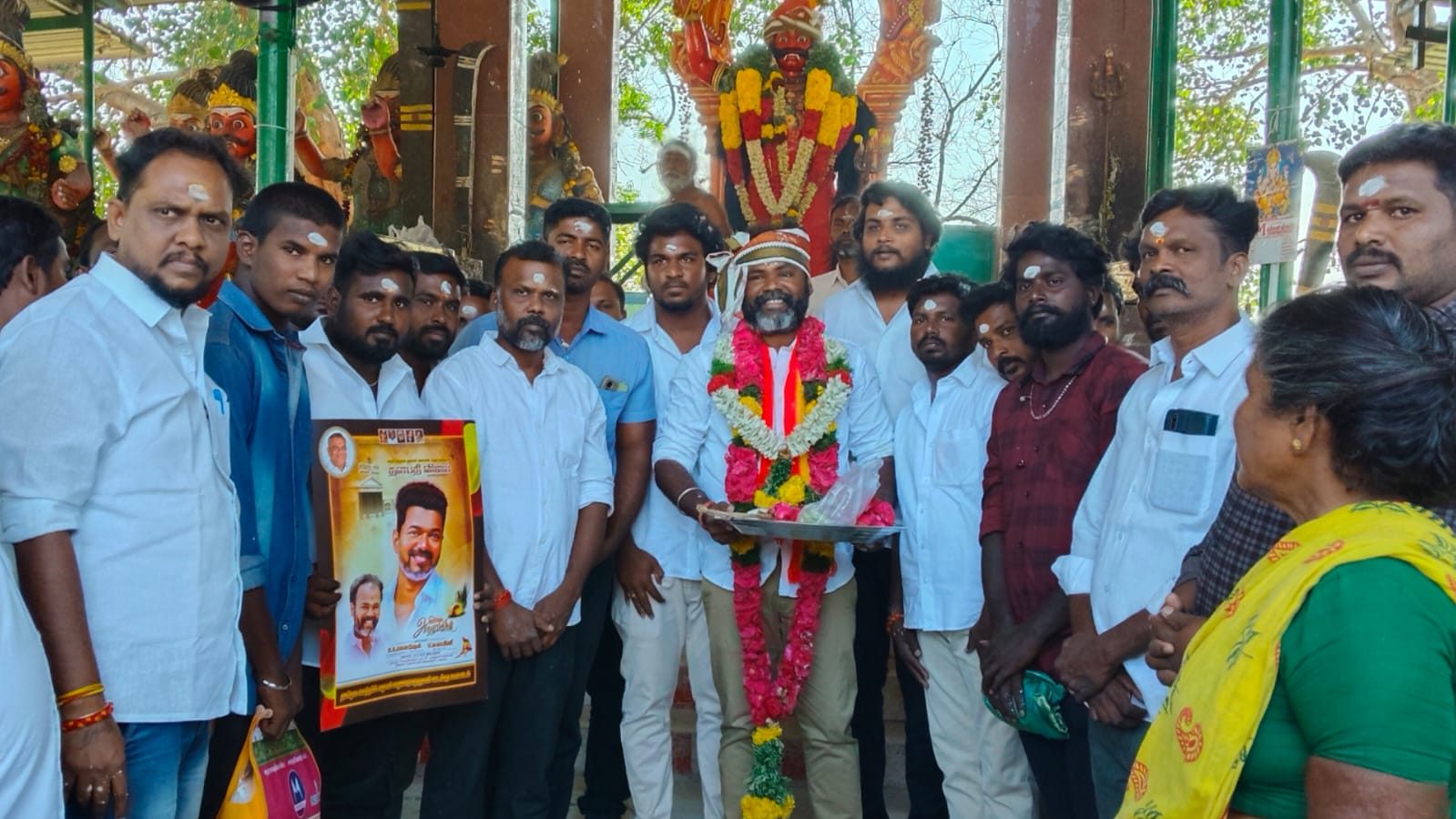 மதுரை மாவட்டம் அலங்காநல்லூரில் பிரசித்தி பெற்ற ஸ்ரீ முனியாண்டி கோவிலில் தமிழக வெற்றிக் கழகத்தின் சார்பில் ஜனநாயகன். படம் வெற்றியடைய வேண்டி வடக்கு மாவட்ட செயலாளர் விஜய் அன்பன் கல்லானை தலைமையில் நிர்வாகிகள் சிறப்பு பூஜைகள் செய்து வழிபட்டனர்.