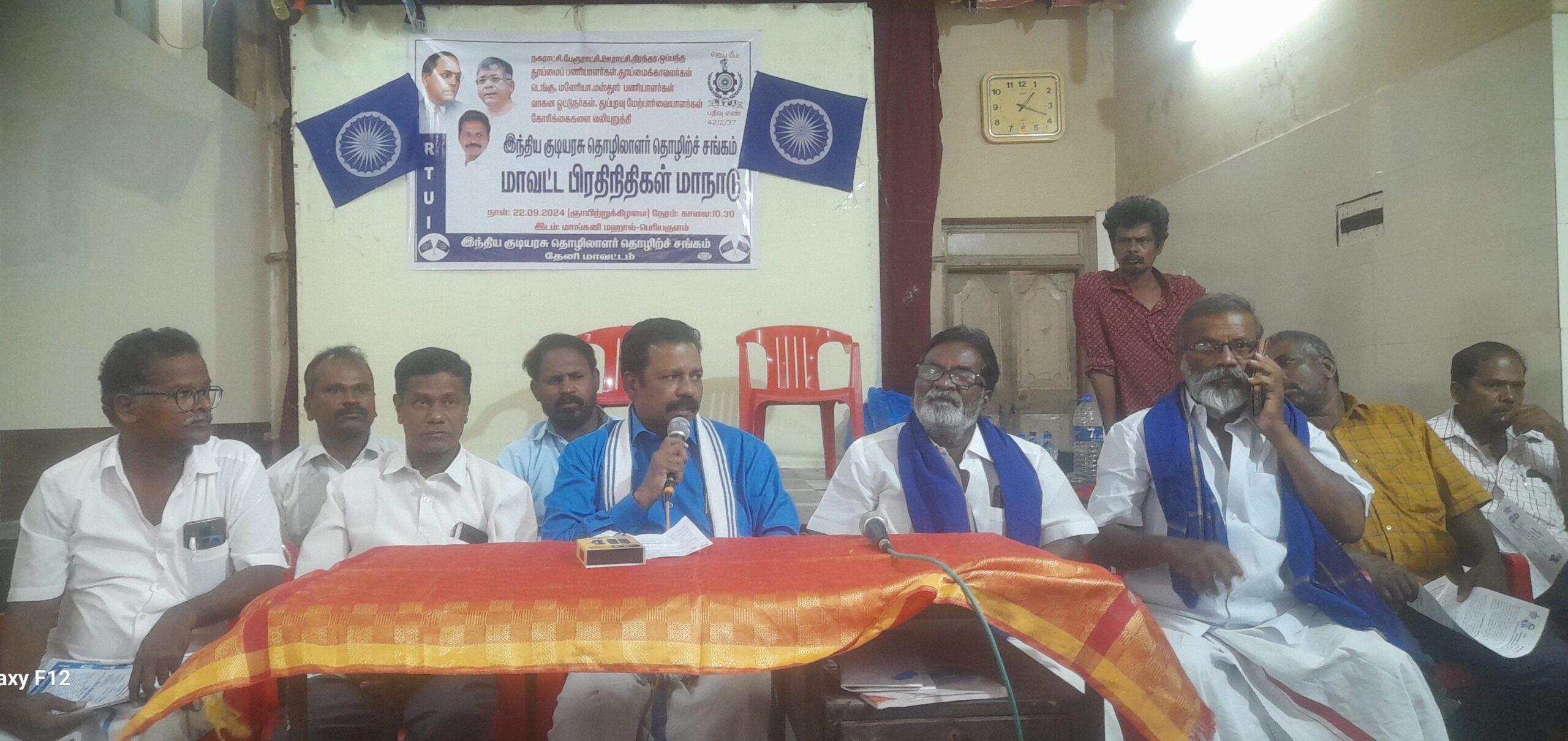 தேனி மாவட்டம் பெரியகுளத்தில் நகராட்சி,பேரூராட்சி, ஊராட்சி அலுவலகங்களில் உள்ள நிரந்தர ,ஒப்பந்த தூய்மை பணியாளர்கள்,தூய்மை காவலர்கள்,டெங்கு, மலேரியா, மஸ்தூர் பணியாளர்கள்,துப்புரவு மேற்பார்வையாளர்கள் மற்றும் வாகன ஓட்டுனர்களின் கோரிக்கைகளை வலியுறுத்தி இந்திய குடியரசு தொழிலாளர்கள் தொழிற்சங்கம் மாவட்ட பிரதிநிதிகள் மாநாடு நடைபெற்றது.இந்த நிகழ்ச்சிக்கு தேனி மாவட்ட தலைவர் நடராஜன் தலைமை வகித்தார்,