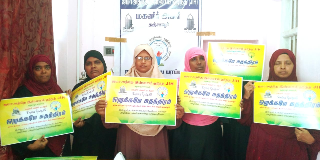 இதன் ஒரு பகுதியாக மாநில ஒருங்கிணைப்பாளர் பேட்டி பாத்திமா ஜான், தஞ்சாவூர் பெண்கள் வட்ட ஒருங்கிணைப்பாளர் ஆலிமா சலீமா பேகம் ஆகியோர் இணைந்து ஒழுக்கமே சுதந்திரம் பரப்புரை யின் லோகோவை வெளியிட்டனர்.