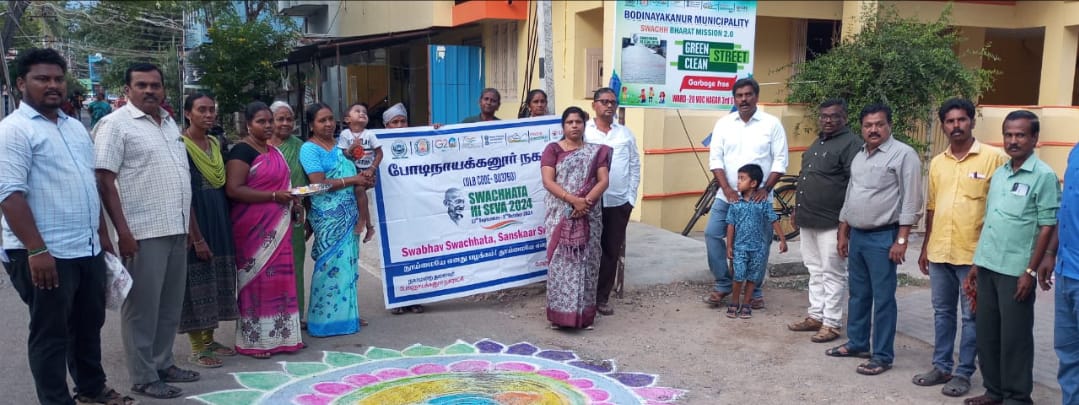 போடிநாயக்கனூர் நகராட்சி 20ஆவது வார்டு தெருக்கள் சுத்தம் செய்த தகவல்களை திறந்து வைத்த நகர் மன்ற தலைவர் தேனி மாவட்டம் போடிநாயக்கனூர் நகராட்சி தூய்மை இந்தியா திட்டத்தின் கீழ் 20 ஆவது வார்டு பகுதியில் சுருளி லேஅவுட் வ உ சி நகர் தெற்கு தெரு வ உ சி நகர் 2வது தெரு ஆகிய தெருக்களை கிரீன் ஸ்ட்ரீட் கிளீன் ஸ்ட்ரீட் தெருக்களாக போடிநாயக்கனூர் நகராட்சியால் தேர்வு செய்யப்பட்டதை தொடர்ந்து அதை பொதுமக்களுக்கு பிரகடனப்படுத்தும் விதமாக பதாகைகளை நகராட்சி நகர் மன்ற தலைவர் ராஜராஜேஸ்வரி சங்கர் திறந்து வைத்தார்