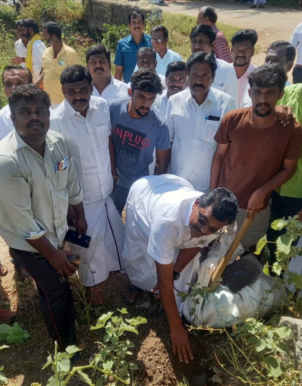 தேனி நாடாளுமன்ற உறுப்பினர் தங்க தமிழ்செல்வன் தலைமையில் பெரியகுளம் லட்சுமிபுரம் செங்குளம் கண்மாயில் உத்தமபாளையம் நன்செய் தன்னார்வ அமைப்பு ஒருங்கிணைப்பில் தேனி மாவட்ட தன்னார்வலர்கள் நடத்தும் 6ஆம் ஆண்டு பனை நடவு 2024 நிகழ்வு எம்பி பிறந்த தினத்தை முன்னிட்டு 3500 பனை விதைகளை எம்பி தங்க தமிழ்ச்செல்வன் நடவு செய்து துவக்கி வைத்தார்.