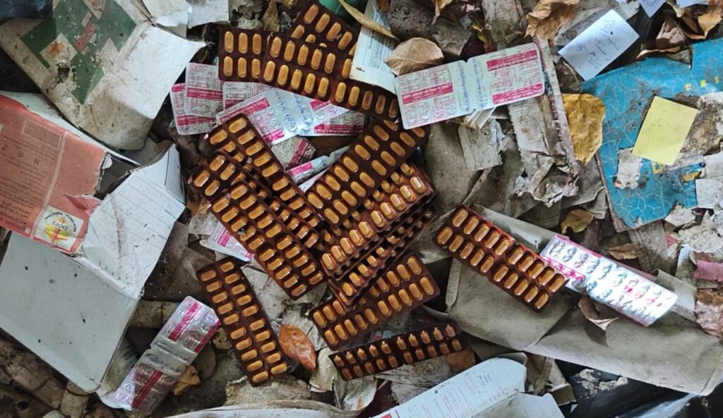 மேலும் கட்டிடத்தின் உள்ளே காலாவதியான மாத்திரைகள், மருந்துகள், பழுதடைந்த மருத்துவ உபகரணங்கள் குவிந்து கிடக்கிறது.