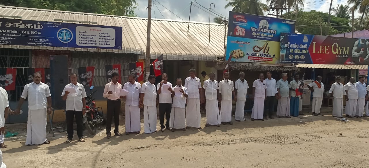 போராட்டத்திற்கு வலங்கைமான் மேற்கு ஒன்றிய செயலாளரும், ஒன்றிய குழு தலைவருமான குமாரமங்கலம் கே. சங்கர் தலைமை வகித்தார். கிழக்கு ஒன்றிய செயலாளர் இளவரசன்,நகர செயலாளர் சா. குணசேகரன் ஆகியோர் முன்னிலை வகித்தனர். போராட்டத்தில் தமிழக அரசே சொத்து வரி உயர்வை ரத்து செய், நிர்வாக திறன் அற்ற பொம்மை முதல்வரே ராஜினாமா செய், கல்விக் கடனை ரத்து செய்,விலைவாசி ஏறி போச்சு,மின் கட்டணம் ஏறி போச்சு, சட்ட ஒழுங்கு கெட்டுப் போச்சு, குடிநீர் வரியை குறைத்திடு, கஞ்சா புழக்கம் பரவி போச்சு, மக்கள் விரோத ஆட்சி முடிய போகுது,மின் கட்டண உயர்வை ரத்து செய், போதைப் பொருள் புழக்கத்தை கட்டுப்படுத்து போன்ற கோஷங்களை எழுப்பினர். போராட்டத்தில் மாவட்ட மாணவர் அணி இணை செயலாளர் ஜெய. இளங்கோவன்,மாவட்ட பிரதிநிதிகள் எஸ். மூர்த்தி,ஆர்.ஜி.பாலா,தொழுவூர் முனுசாமி, நகர அவைத் தலைவர் ரத்தினகுமார், மாத்தூர் குமார், மாவட்ட குழு உறுப்பினர், ஒன்றிய குழு உறுப்பினர்கள், பேரூராட்சி மன்ற உறுப்பினர்கள், உள்ளாட்சி பிரதிநிதிகள், கட்சி நிர்வாகிகள், தொண்டர்கள் உள்ளிட்ட பலர் கலந்து கொண்டனர்.