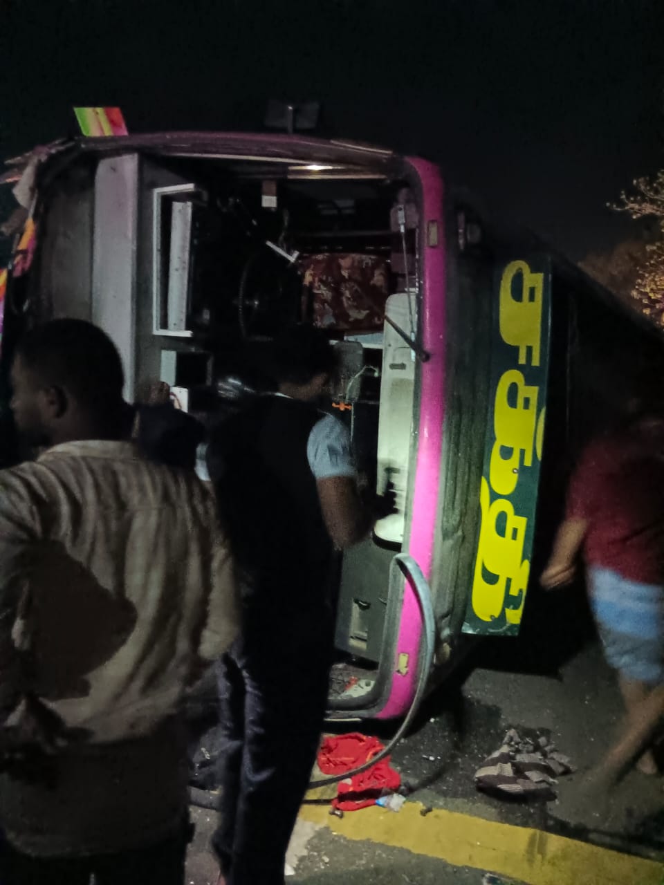 இதில் இருவருக்கு பலத்த காயம் ஏற்பட்டுள்ளது விபத்து குறித்து சம்பவ இடத்திற்கு விரைந்து வந்த காவல்துறையினர் துறையினர் பாதிப்புக்குள்ளான தனியார் பேருந்தை மீட்டு விசாரணை செய்து வருகின்றனர் கடந்த சில மாதங்களுக்கு முன்பாக இதை இடத்தில் பேருந்து விபத்துக்குள்ளானது குறிப்பிடத்தக்கது இப்பகுதியில் அடிக்கடி விபத்துக்கள் ஏற்படுவதாலும் இதனால் அதிகமாக பொதுமக்களே பாதிக்கப்படுகின்றனர்