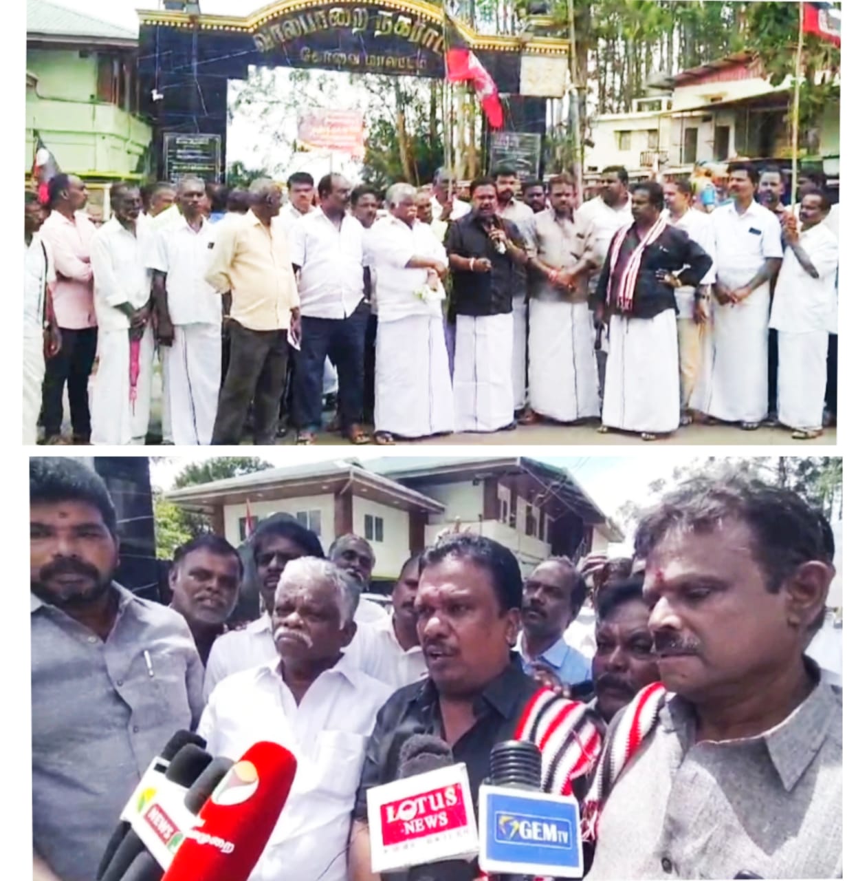 கோவை மாவட்டம் வால்பாறையில் அதிமுகவின் சட்டமன்ற உறுப்பினர் டி.கே.அமுல்கந்தசாமி தலைமையில் நகரச்செயலாளர் ம.மயில்கணேசன், ஏ.டி.பி.தொழிற்சங்க தலைவர் வால்பாறை வீ.அமீது ஆகியோர் முன்னிலையில் சொத்துவரி உயர்வு, குடிநீர் வரி உயர்வு, வாடகை உயர்வு, உள்ளிட்ட பல்வேறு வரி உயர்வுகளை திரும்பப் பெறவும் நகராட்சி டெண்டர் பணிகளை முறையாக வழங்கவும், தொழிலாளர்களிடம் பிடித்தம் செய்யப்படும் தொழில் வரியை ரத்து செய்யவும் வலியுறுத்தி நகராட்சி அலுவலகம் முன்பு மனித சங்கிலி ஆர்ப்பாட்டத்தில் ஈடுபட்டனர்