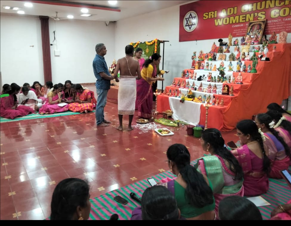 துணை சார்ந்த பேராசிரியர்கள் மாணவிகள் மற்றும் அலுவலர்கள் கொழு பூஜை நடத்தப்பட்டு வருகிறது இந்த நிகழ்ச்சியில் மாணவிகள் அனைவரும் மிகுந்த உற்சாகத்துடன் கலந்து கொண்டனர்