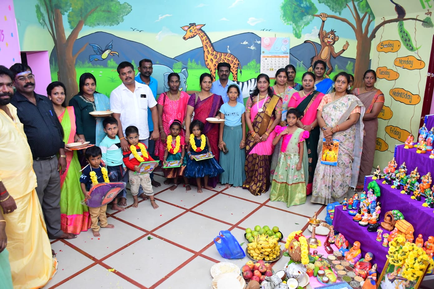 விஜயதசமி தினமான நேற்று மழலையர் சேர்க்கை நடைப்பெற்றது. புதுபட்டினம் பள்ளி வளாக கொலு மண்டபத்தில் .ஒரு கலசம் அமைத்து விநாயகர், சிவபெருமான், சரஸ்வதி, லட்சுமி என அனைத்து தெய்வங்களுக்கும் விசேஷ பூஜைகள் நடைபெற்றது.