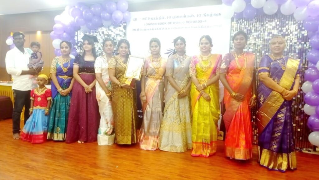 அதன் நிகழ்வுகளை பார்வையாளர்கள் முன்பு பெண் குழந்தை பிறப்பு முதல் காதணி விழா மஞ்சள் நீராட்டு விழா பட்டமளிப்பு விழா நிச்சயதார்த்த விழா வரவேற்பு விழா திருமண விழா வளையன விழா அறுபதாவது திருமண விழா என பல்வேறு விழாக்களில் பெண்கள் ஐந்து முதல் 60 வரை பயன்படுத்தும் பிளவுசை ஒரு இடத்தில் 10 நிகழ்வுகளாக யாழினி பிளவுஸ் டிசைனர் திவ்யா வெங்கடேஷ் பத்து டிசைன்களை 10 மணி நேரத்தில் செய்து காட்டி சாதனை படைத்துள்ளார்.