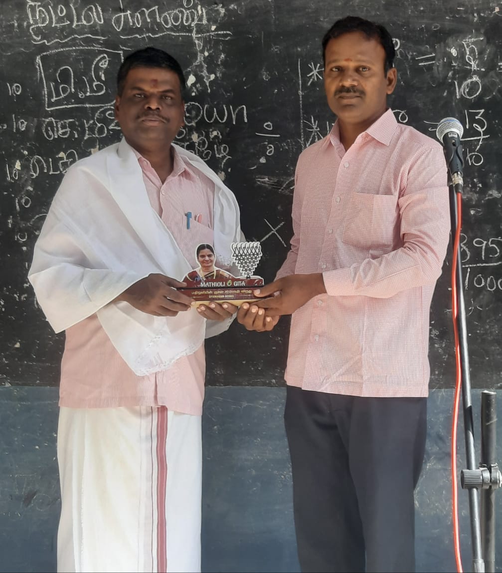 ஏற்புரை வழங்கிய ஆசிரியர் ஆதலையூர் சூரியகுமார் பரிசு தொகையிலிருந்து ஒரு பகுதியை மெல்ல கற்கும் மாணவர்களின் மேம்பாட்டிற்காக வழங்குவதாக அறிவித்தார்.