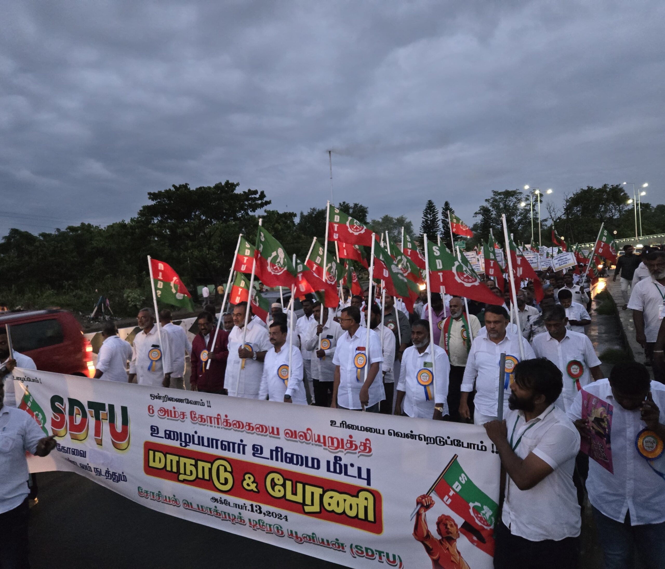 சோசியல் டெமாகரடிக் டிரேடு யூனியன் SDTU கோவை மண்டலம் சார்பாக கோவையில் நடைபெற்ற உழைப்பாளர் உரிமை மீட்பு மாநாட்டில் தொழிலாளர் விரோத சட்டங்களை ரத்து செய்வது உள்ளிட்ட பல்வேறு தீர்மானங்கள் நிறைவேற்றப்பட்டது..