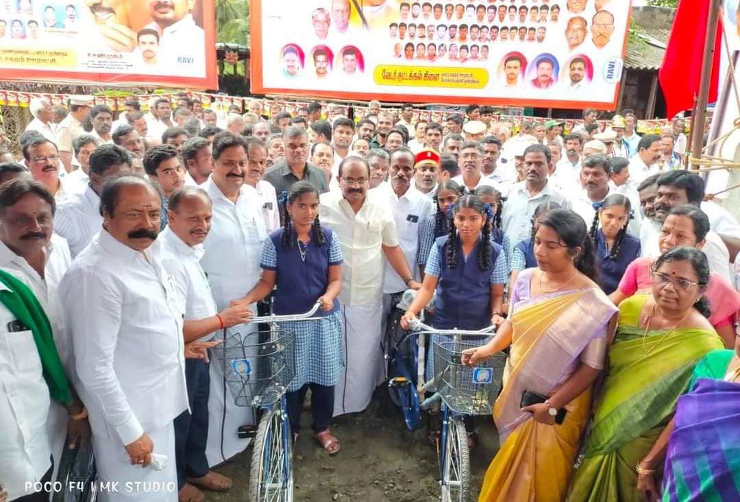 கிருஷ்ணகிரி கிழக்கு மாவட்டம்,பர்கூர் சட்டமன்ற தொகுதிக்குட்பட்ட, போச்சம்பள்ளி ஒன்றியம், காட்டாகரம் ஊராட்சி, அரசு மேல்நிலை பள்ளியில் பயிலும் மாணவ, மாணவிகளுக்கு விலையில்லா இலவச மிதிவண்டி மற்றும் இலவச மரகன்றுகளை வழங்கியும், மேலும் ரூ.42 இலட்சம் 65 ஆயிரம் மதிப்பீட்டில் புதிய கிராம செயலக கட்டிட திறப்பு விழாவில் தமிழ்நாடு உணவு மற்றும் உணவு பொருள் வழங்கல் துறை மாண்புமிகு அமைச்சர் அர.சக்கரபாணி கிருஷ்ணகிரி கிழக்கு மாவட்ட செயலாளரும், பர்கூர் தொகுதி சட்டமன்ற உறுப்பினருமான தே.மதியழகன் MLA ஆகியோர்கள் கலந்து கொண்டு குத்துவிளக்கேற்றி சிறப்புரையாற்றி ஊராட்சி மக்களின் பயன்பாட்டிற்காக திறந்து வைத்தார்கள்.