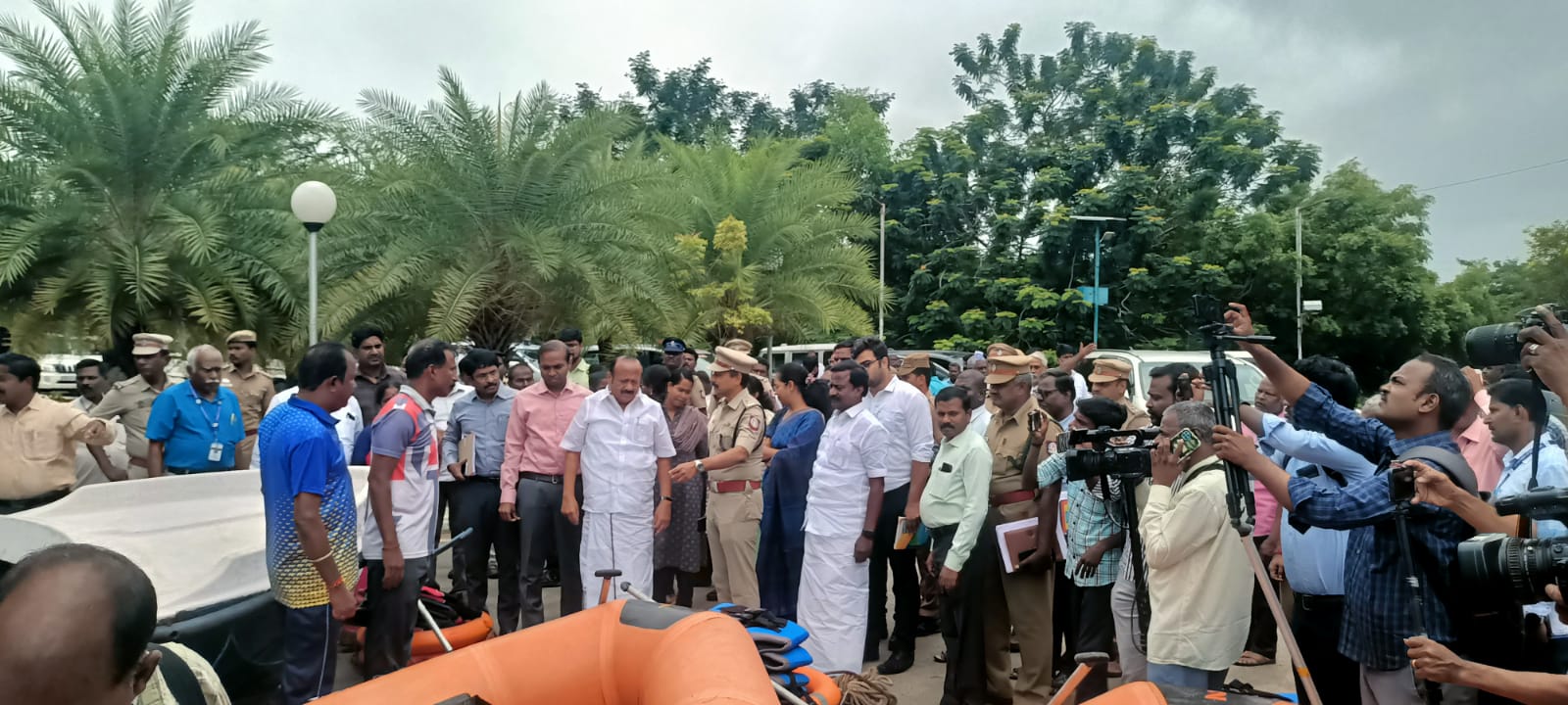 தமிழ்நாடு வேளாண்மை மற்றும் உழவர் நல துறை அமைச்சர் மாண்புமிகுஎம் ஆர்.கே பன்னீர் செல்வம் முன்னெச்சரிக்கை நடவடிக்கை தொடர்பாக ஏற்பாடு செய்யப்பட்டுள்ள உபகரணங்களை பார்வையிட்டார் அதன்பின் ஆட்சியர் அலுவலகத்தில் அனைத்து நிலை அலுவலர்களுடன் ஆய்வு கூட்டம் நடைப்பெற்றுக்கொண்டிருக்கிறது.