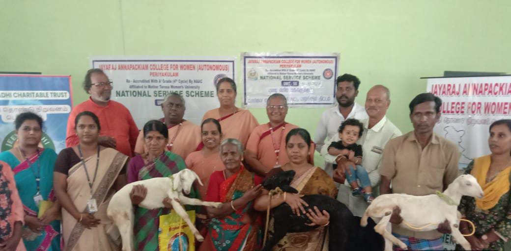 மேலும் எமது கல்லூரியில் பயிலும் தந்தையர்களை இழந்த மூன்று மாணவிகளின் குடும்பத்திற்கு ரூபாய் 15000/- மதிப்பிலான மூன்று ஆட்டுக்குட்டிகள் வாழ்வாதாரத் வழங்கப்பட்டன. தேவைகளுக்காக இந்நிகழ்வில் 250 நாட்டுநலப் பணித்திட்டத் தன்னார்வலர்களும், நாட்டுநலப்பணித்திட்டப் பேராசிரியர்களும் கலந்துகொண்டு சிறப்பித்தனர்.