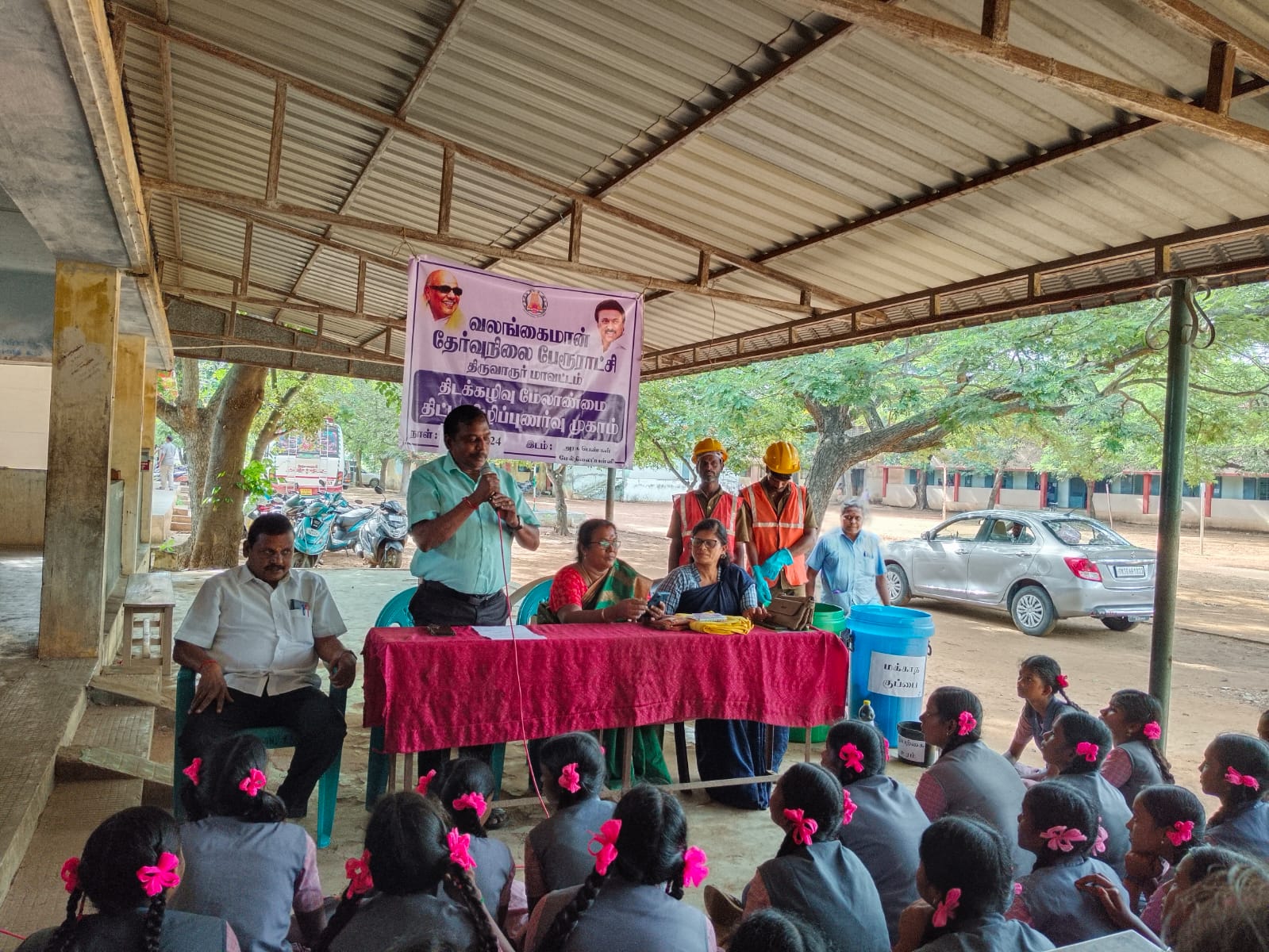 பள்ளியின் உதவி தலைமை ஆசிரியை புவனேஸ்வரி அனைவரையும் வரவேற்றார். சிறப்பு விருந்தினராக பேரூராட்சி செயல் அலுவலர் சரவணன் கலந்து கொண்டு திடக்கழிவு மேலாண்மை குறித்து பள்ளி மாணவிகள் மத்தியில் விழிப்புணர்வு ஏற்படுத்தினார்.