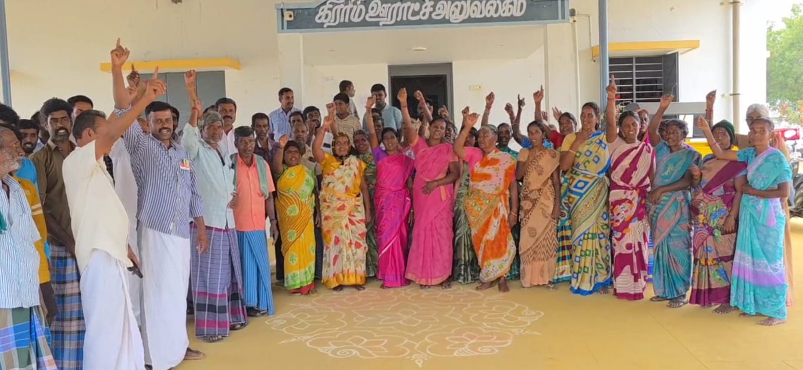 கௌரி ஸ்டில்ஸ் இரும்பு ஆலைக்கு எதிராக கிராம சபை கூட்டத்தில் இரும்பாலையை அகற்ற வேண்டும் என வலியுறுத்தி தீர்மானம் நிறைவேற்ற வேண்டும் என வலியுறுத்தி விவசாயிகள் மற்றும் கிராம மக்கள் திடீரென ஊராட்சி மன்ற அலுவலகத்தில் திடீரென அமர்ந்து தர்ணா போராட்டத்தில் ஈடுபட்டு வருகின்றனர்.