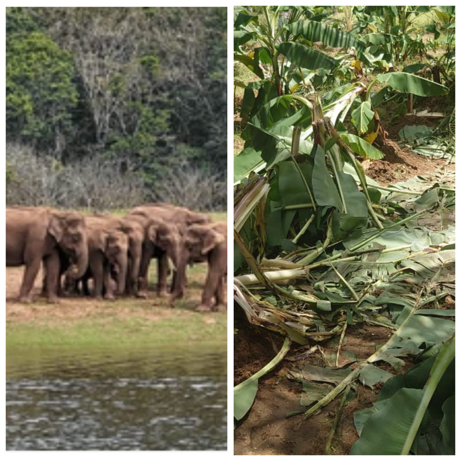 கடந்த மூன்று நாட்களாக நான்கு யானைகள் கொண்ட கூட்டம் இரவு நேரங்களில் தென்னை வாழை மா மரங்களை சேதப்படுத்த துவங்கியுள்ளன.