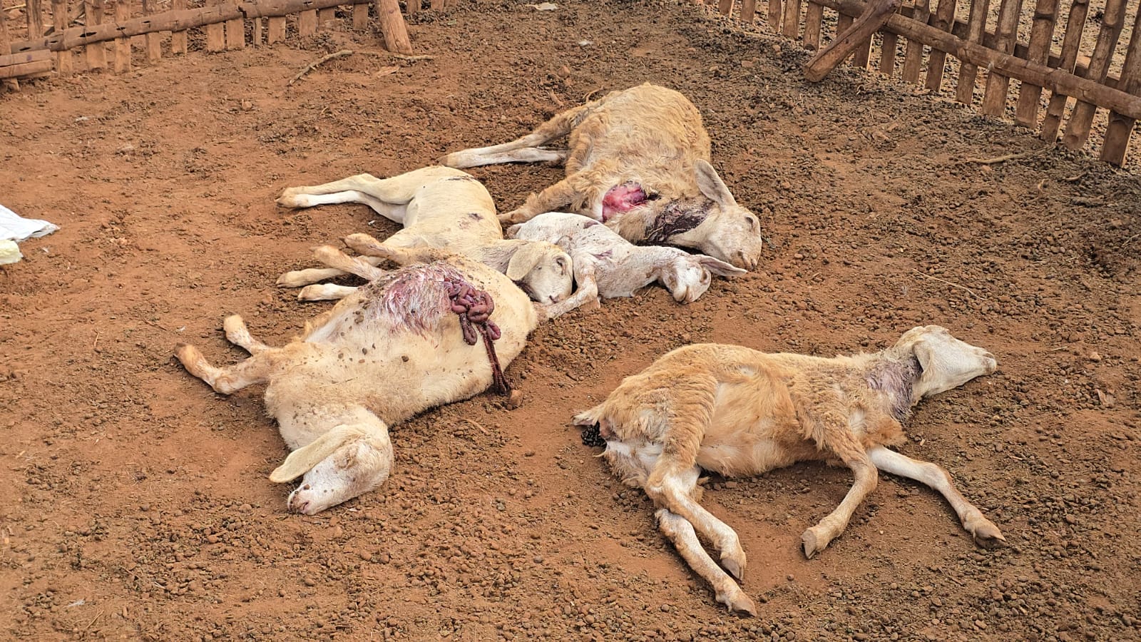 4- வெறி நாய்கள் செம்மறியாடுகள் அடைக்கப்பட்டிருந்த பட்டிக்குள் இருந்து தப்பிச்சென்றதாக விவசாயிகள் கூறுகின்றனர்.