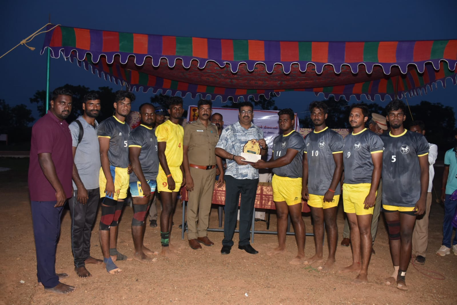 மேலும் வெற்றி பெற்ற அணியினருக்கு அரியலூர் மாவட்ட காவல் கண்காணிப்பாளர் .ச.செல்வராஜ் விருது மற்றும் பரிசுத்தொகை வழங்கி பாராட்டினார்கள்.கீழப்பழூர் காவல் ஆய்வாளர் .இராஜீவ் காந்தி ,உதவி ஆய்வாளர்கள் மற்றும் காவலர்கள் உடன் இருந்தனர்.