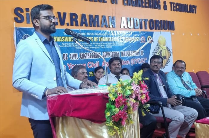 கல்லூரி கட்டிட வியல் துறைத் தலைவர் ஆனந்த கிருஷ்ணன் அனைவரையும் வரவேற்று பேசினார் கல்லூரி முதல்வர் மதளை சுந்தரம் வாழ்த்துரை வழங்கினார் இந்த கருத்தரங்கில் சென்னை எல் அன் டி நிறுவன மேலாளர் சுரேஷ்குமார் சிறப்பு விருந்தினராக பங்கேற்று கட்டிடவியல் துறை மேம்பாடுகள் பற்றிய கருத்துள்ள மாணவர்களுக்கு பயன்படும் தேவையான கருத்துக்களை எடுத்துக் கூறினார்