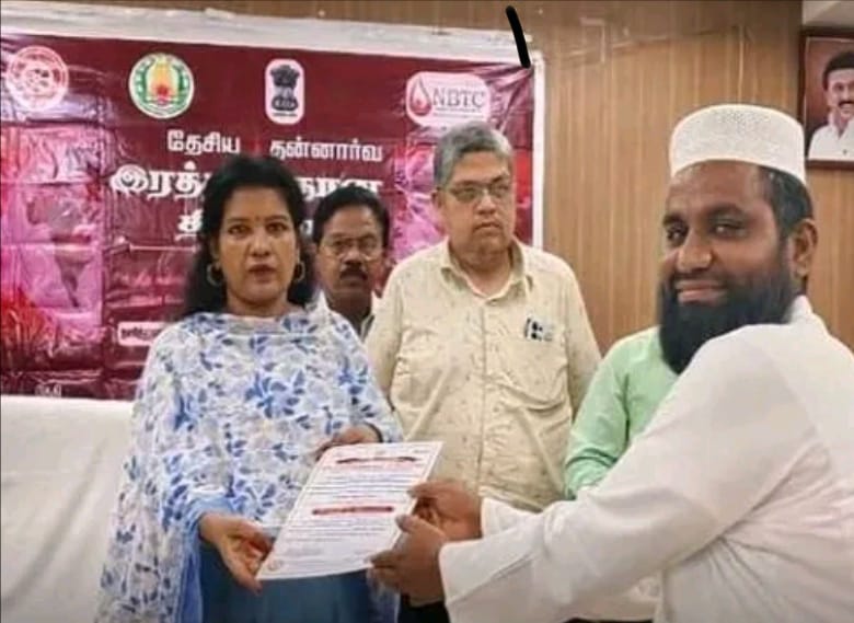 தேசிய தன்னார்வலர்கள் தினத்தை முன்னிட்டு இரத்த தான அமைப்பிற்கு மாவட்ட ஆட்சியர் சான்றிதழ் வழங்கி கௌரவிப்பு தேசிய தன்னார்வலர்கள் தினமான நேற்று மாவட்ட ஆட்சியர் அலுவலகத்தில் நடைபெற்ற நிகழ்ச்சியில் தானத்தில் சிறந்த தானம் இரத்ததானம் என்பதை ஊக்குவிக்கும் விதமாக சிறந்த ரத்ததான ஒருங்கிணைப்பு அமைப்பிற்கான சான்றிதழை பசி யில்லா பெரியகுளம் என்ற அமைப்பிற்கு சிறந்த இரத்த தானம் முகாம்கள்ஏற்பாடு செய்து பல்வேறு விலைமதிப்பற்ற மனித உயிரை காப்பாற்றியதற்காக அமைப்பின் நிறுவனத் தலைவர் அகமது பௌஜுதீன் அவர்களுக்கு மாவட்ட ஆட்சித் தலைவர் ஆர்.வி.ஷஜீவனா சான்றிதழ் வழங்கி கெளரவிக்க பட்டது. உடன் பெரியகுளம் ரத்த வங்கி டாக்டர் பாரதி மற்றும் மருத்துவர்கள் உடன் இருந்தனர்