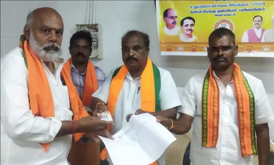 தேனி மாவட்டம் கம்பம் அருகே உள்ள கம்பம் புதுப்பட்டி பேரூராட்சி பகுதிகளில் பாரதிய ஜனதா கட்சியின் உறுப்பினர் சேர்க்கை படிவத்தை தேனி மாவட்ட பாரதிய ஜனதா கட்சி துணைத் தலைவர் ஜெயராமன் தலைமையில்மேற்கு ஒன்றியம் மண்டல தலைவர் நந்தகோபால் முன்னிலையில் கம்பம் புதுப்பட்டி பாரதிய ஜனதா கட்சியின் பேரூர் செயலாளர் முருகேசன் ஆகியோரிடம் இருந்து பாஜக பிரமுகர் ரெங்கபாபு பாஜக பேரூராட்சி மன்ற உறுப்பினர் ரெங்கபாபு பிரதீபா பெற்றுக்கொண்டு கம்பம் புதுப்பட்டியில் உள்ள ஏராளமான பொதுமக்களை பாஜகவில் உறுப்பினராக சேர்க்கும் பணியில் தீவிரமாக ஈடுபட்டனர்.