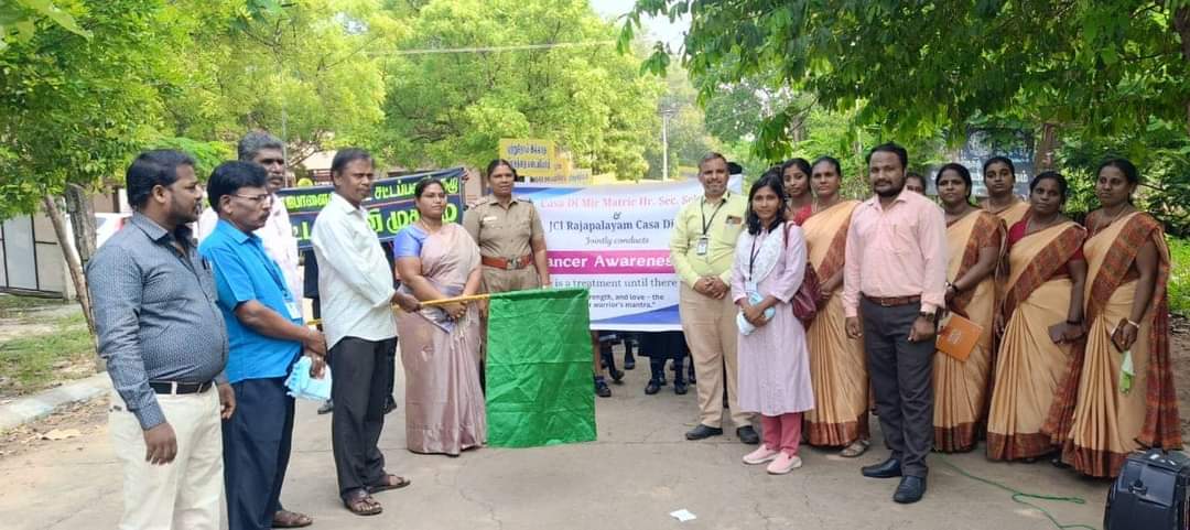 வட்டாட்சியர் அலுவலகம் முதல் பழைய பேருந்து நிலையம் வரை கேசா டி மிர் பள்ளி மற்றும் ஜே.சி.ஐ ராஜபாளையம் இணைந்து தேசிய புற்றுநோய் விழிப்புணர்வு தினத்தை முன்னிட்டு பள்ளி மாணவர்கள் மற்றும் ஆசிரியர்களால் ஊர்வலம் நடத்தப்பட்டது.