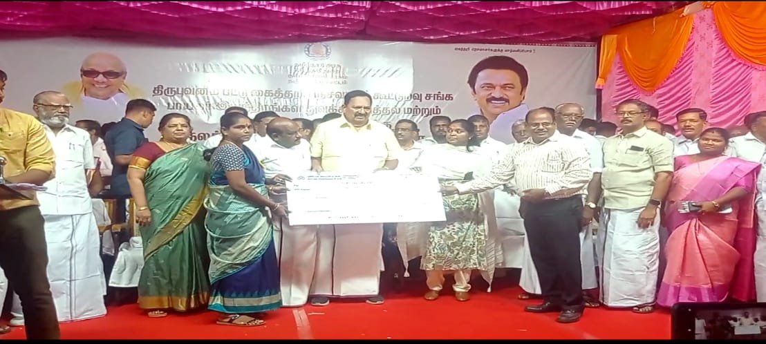 கும்பகோணம் அருகே திருபுவனம் பட்டு கைத்தறி நெசவாளர் கூட்டுறவு சங்க பாய்லர் இயந்திரம் துவக்கி வைத்தல் மற்றும் நெசவாளர்களுக்கு நலத்திட்ட உதவிகள் வழங்கும் விழாவில் தமிழக கைத்தறித்துறை அமைச்சர் காந்திய, உயர்க்கல்வித்துறை அமைச்சர் கோவி.செழியன், மாவட்ட ஆட்சியர் பிரியங்கா பங்கஜம் உள்ளிட்டோர் கலந்து கொண்டுள்ளனர்.