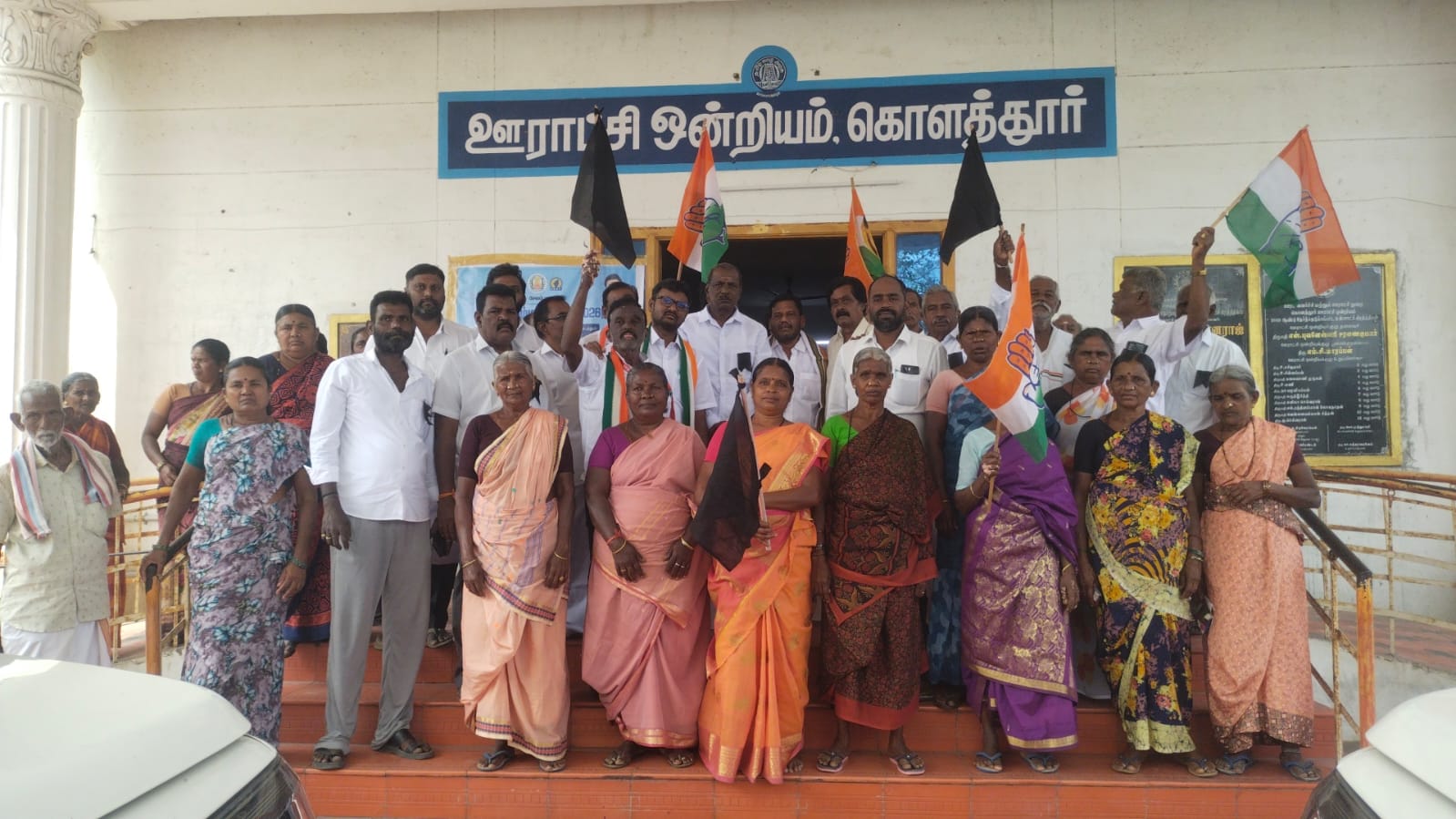 கொளத்தூர் வட்டாரத் தலைவர் எஸ் எஸ் மோகனன். ஐ என் டி யு சி மின் வாரிய மாநில பொருளாளர் பாலசுப்பிரமணி. வட்டாரப் பொறுப்பாளர் லாரன்ஸ். நகரத் தலைவர் ஜெயக்குமார். ஆகியோர் முன்னிலை வகித்தனர். ஆர்ப்பாட்டத்தில் மகாத்மா காந்தி பெயரை 100 நாள் வேலை திட்டத்தில் நீக்கியதை கண்டித்தும் அவர் பெயரை நீக்க கூடாது என்றும் கோஷங்கள் எழுப்பி கண்டன ஆர்ப்பாட்டம் நடைபெற்றது.