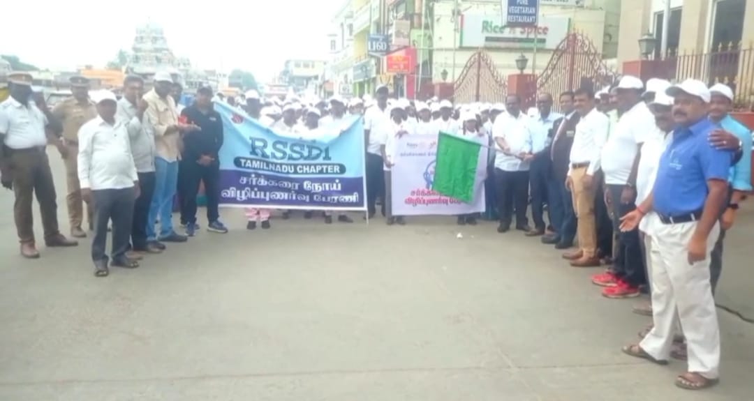 தஞ்சாவூர் மாவட்டம் கும்பகோணத்தில் கிரீன் சிட்டி ரோட்டரி சங்கம் மற்றும் தமிழ்நாடு சேப்டர் RSSDI இணைந்து நடத்தும் சர்க்கரை நோய் விழிப்புணர்வு பேரணி கிரீன் சிட்டி ரோட்டரி சங்கத் தலைவர் டாக்டர் .பிரகாஷ் தலைமையில் நடைபெற்றது.