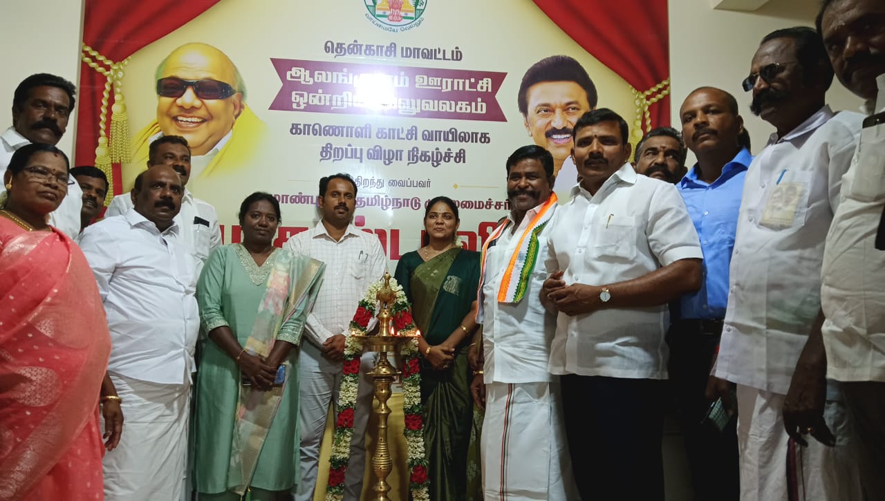 .தென்காசி மாவட்டம் ஆலங்குளம் ஊராட்சியில் ரூ.3.63 கோடி மதிப்பீட்டில் கட்டி முடிக்கப்பட்டுள்ள ஊராட்சி ஒன்றிய அலுவலக கட்டிடத்தினை தமிழ்நாடு முதலமைச்சர் சென்னை தலைமைச் செயலகத்திலிருந்து காணொளி காட்சி வாயிலாக திறந்து வைத்ததைத் தொடர்ந்து தென்காசி மாவட்ட ஆட்சித்லைவர் ஏ.கேகமல்கிஷோர், தென்காசி நாடாளுமன்ற உறுப்பினர் மரு ராணி ஸ்ரீ குமார் ஆலங்குளம் சட்டமன்ற உறுப்பினர் பி.எச்.மனோஜ்பாண்டியன் , தென்காசி சட்டமன்ற உறுப்பினர் எஸ்.பழனிநாடார் ஆலங்குளம் ஊராட்சி ஒன்றியக்குழு தலைவர்திவ்யா மணிகண்டன், துணைத்தலைவர் செல்வக்கொடி ராஜாமணி, ஆலங்குளம் வட்டார வளர்ச்சி அலுவலர்கள், கல்யாண ராம சுப்பிரமணியன், அலிஸ் தாயம்மாள் மற்றும் உள்ளாட்சி பிரதிநிதிகள், அரசு அலுவலர்கள் ஆகியோர் கலந்து கொண்டு குத்துவிளக்கேற்றி பார்வையிட்டார்கள்.