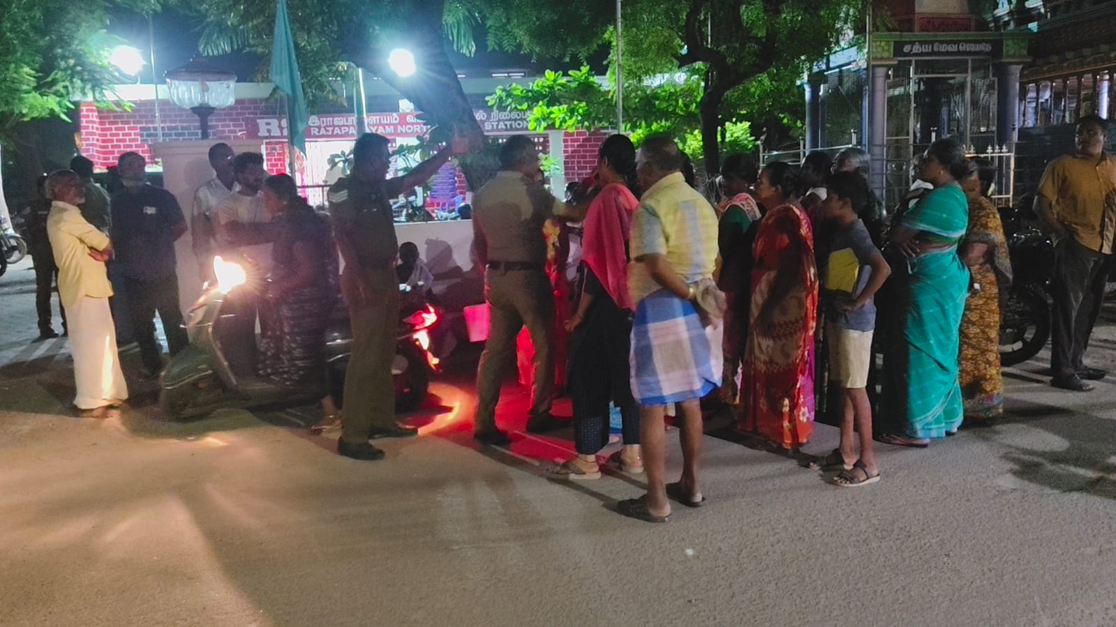 இது குறித்து அப்பகுதியை சேர்ந்த 30க்கு மேற்பட்ட பெண்கள் இராஜபாளையம் வடக்கு காவல் நிலையத்தில் புகார் அளிக்க திரண்டு வந்தனர் காவல் நிலையத்தில் வேறொரு வழக்கில் குற்றவாளிகளை கைது செய்து விசாரணை நடைபெற்று வருவதால் காவல் நிலையத்தை பூட்டி காவலர்கள் உள்ளே அனுமதிக்காமல் இருந்ததால் பெண்கள் வெளியே காத்திருந்தனர்