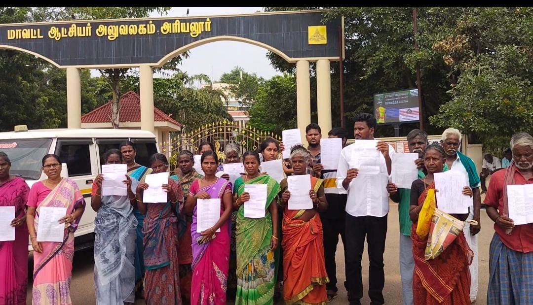 அரியலூர் மாவட்டம் ஜெயங்கொண்டம் அடுத்த இரவாங்குடி கிராமத்தில் வசித்து வரும் பத்துக்கும் மேற்பட்ட குடும்பத்தினர் தங்கள் விவசாய நிலம் மற்றும் கோவிலுக்கு சென்று வரும் பாதையை மீட்டுத் தரக்கோரி மாவட்ட ஆட்சியரிடம் 30க்கும் மேற்பட்ட விவசாயிகள் மனு அளித்தனர்