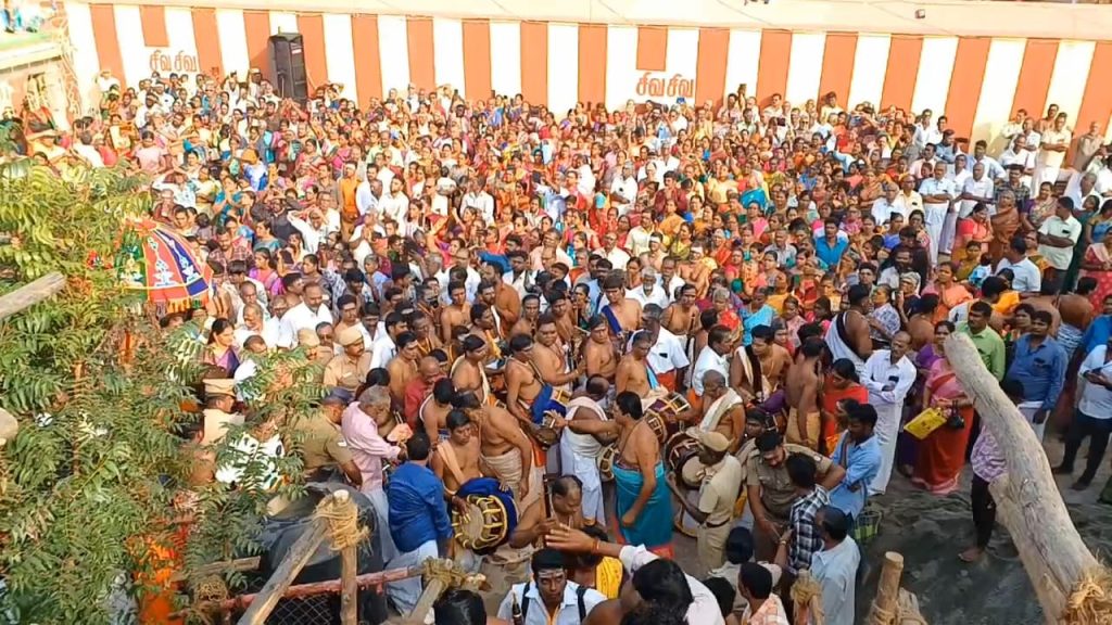 இதனை அடுத்து ஆறு காலையாக சாலை பூஜைகள் கடந்த செவ்வாய்க்கிழமை தொடங்கி நடைபெற்றது விழா அன்று ஆறாம் காலையாக சாலை பூஜை நூறாவது மகா தீபாரனை நடைபெற்று தருமபுரம் ஆதீனம் முன்னிலையில் நீர் அடங்கிய கடன்கள் மேல தாளம் உள்ளங்க வேத விற்பனர்கள் மந்திரம் ஓதிட கோயிலை வலம் வந்து சுவாமி அம்பாள் உள்ளிட்ட கண்ணேதி விமான களத்துங்கள் ராஜகோபுரம் கலசங்களில் புனித நீர் ஊற்றப்பட்டு கும்பாபிஷேகம் விமர்சையாக நடைபெற்றது.