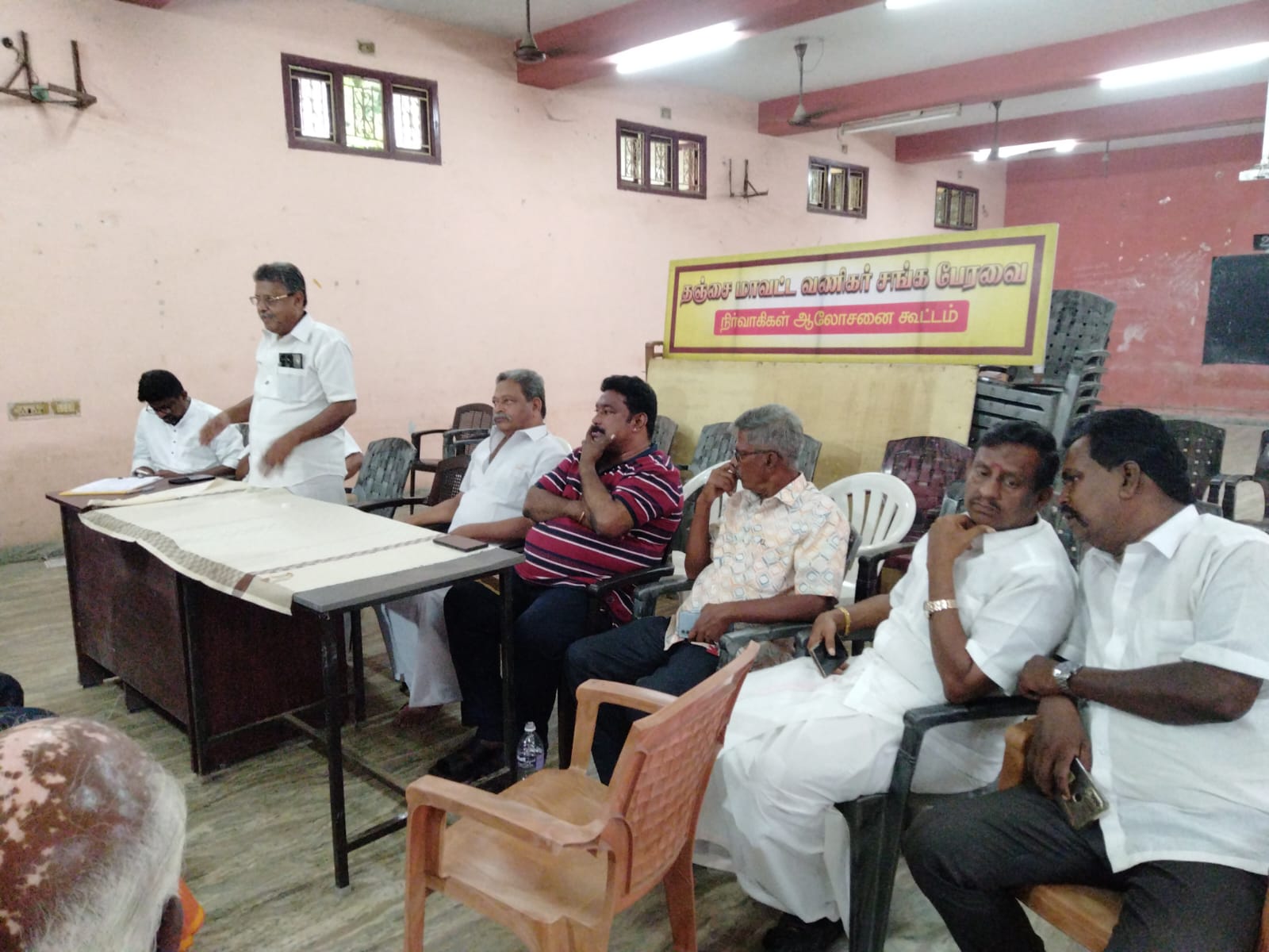 தஞ்சாவூர் :தஞ்சை மாவட்ட வணிகர் சங்க பேரவையின் அவசர ஆலோசனைக் கூட்டம், மாவட்ட அலுவலகத்தில் திங்கட்கிழமை நடைபெற்றது.