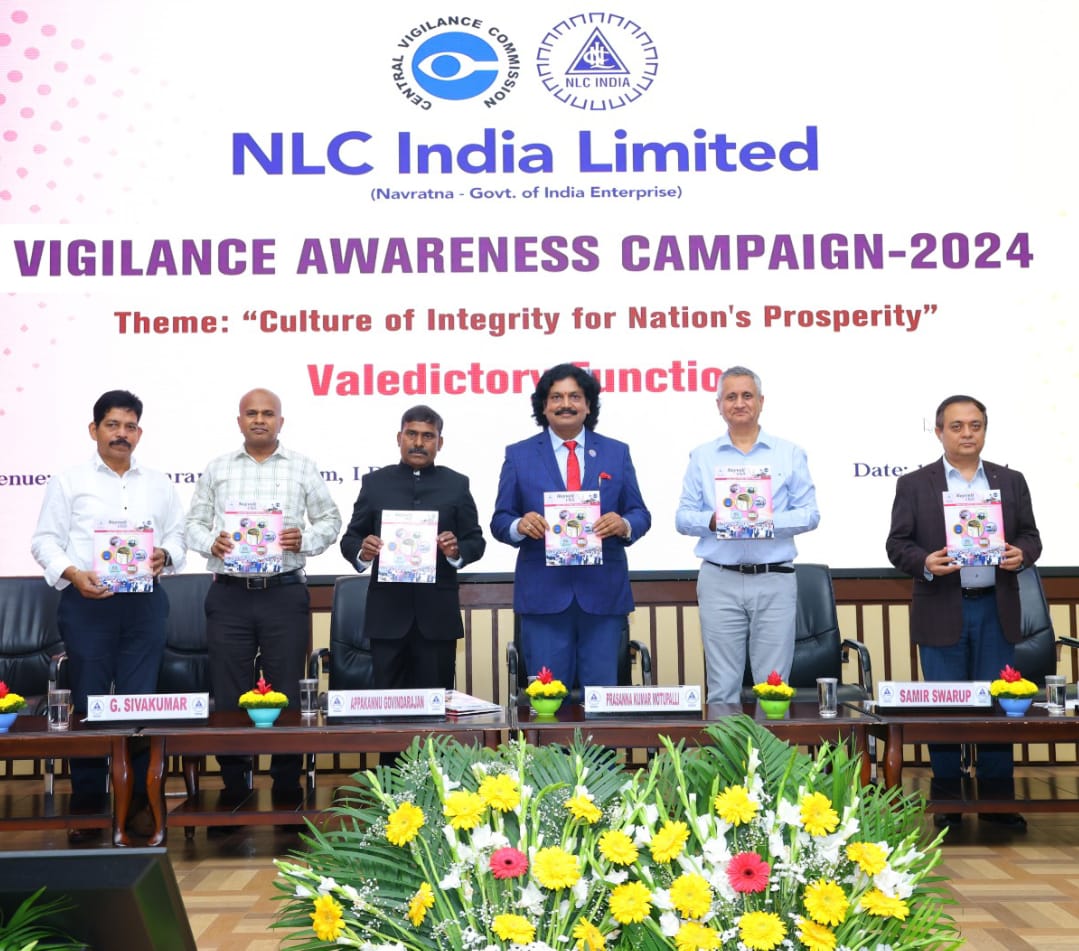 ஊழல் ஒழிப்பு குறித்த, கண்காணிப்பு விழிப்புணர்வு இயக்க விழாவானது. மத்திய கண்காணிப்பு ஆணையத்தின் வழிகாட்டுதலின்படி, என்எல்சி இந்தியா நிறுவனத்தின் சார்பில், “நேர்மை கலாச்சாரமே. தேசத்திற்கான வளர்ச்சி” என்ற மையக் கருத்தில், கடந்த 28.10.2024 முதல் 03.11.2024 வரை. சிறப்பாகக் கொண்டாடப்பட்டது. இந்நிகழ்ச்சிகளுக்கான நிறைவு விழா, நெய்வேலி வட்டம்-20, கற்றல் மற்றும் மேம்பாட்டு மையத்தில் உள்ள யக்னேஸ்வரன் கலை அரங்கத்தில் நடைபெற்றது.