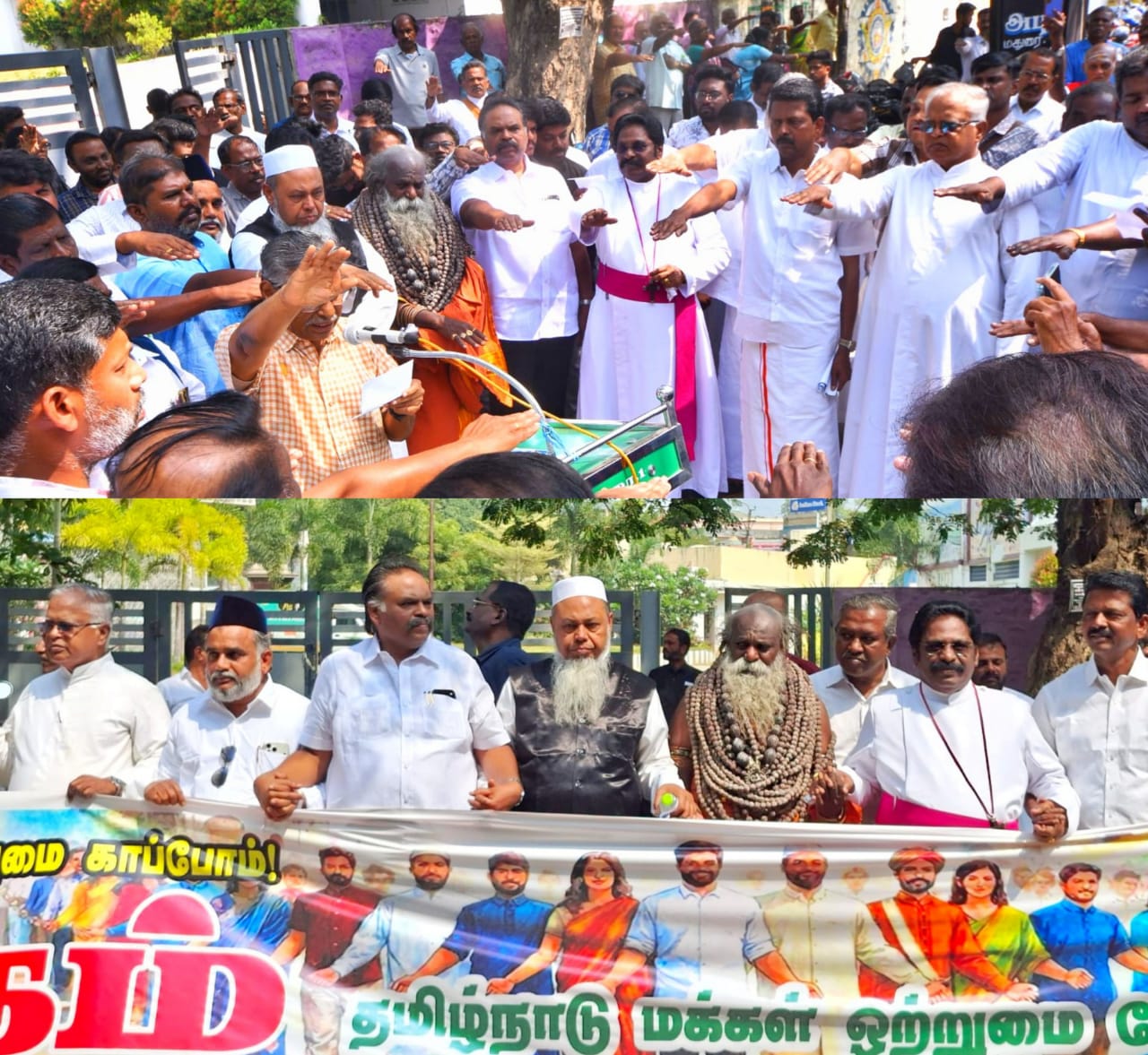 தமிழ்நாடு மக்கள் ஒற்றுமை மேடை சார்பில் மதுரை தமுக்கம் முதல் காந்தி மியூசியம் வரை மனித சங்கிலி இயக்கம் நடைபெற்றது. மதங்களைக் கடந்த மனித ஒற்றுமை யின் அழகான வெளிப்பாடாக இது அமைந்தது.இந்துக்கள், கிறிஸ்தவர், இஸ்லாமியர் உள்ளிட்ட அனைத்து சமூகங்களின் தலைவர்கள் ஒரே மேடையில் இணைந்து, அமைதி, சகோதரத் துவம், சமத்துவம் ஆகிய மதிப்புகளை வலியுறுத்தினர்.
