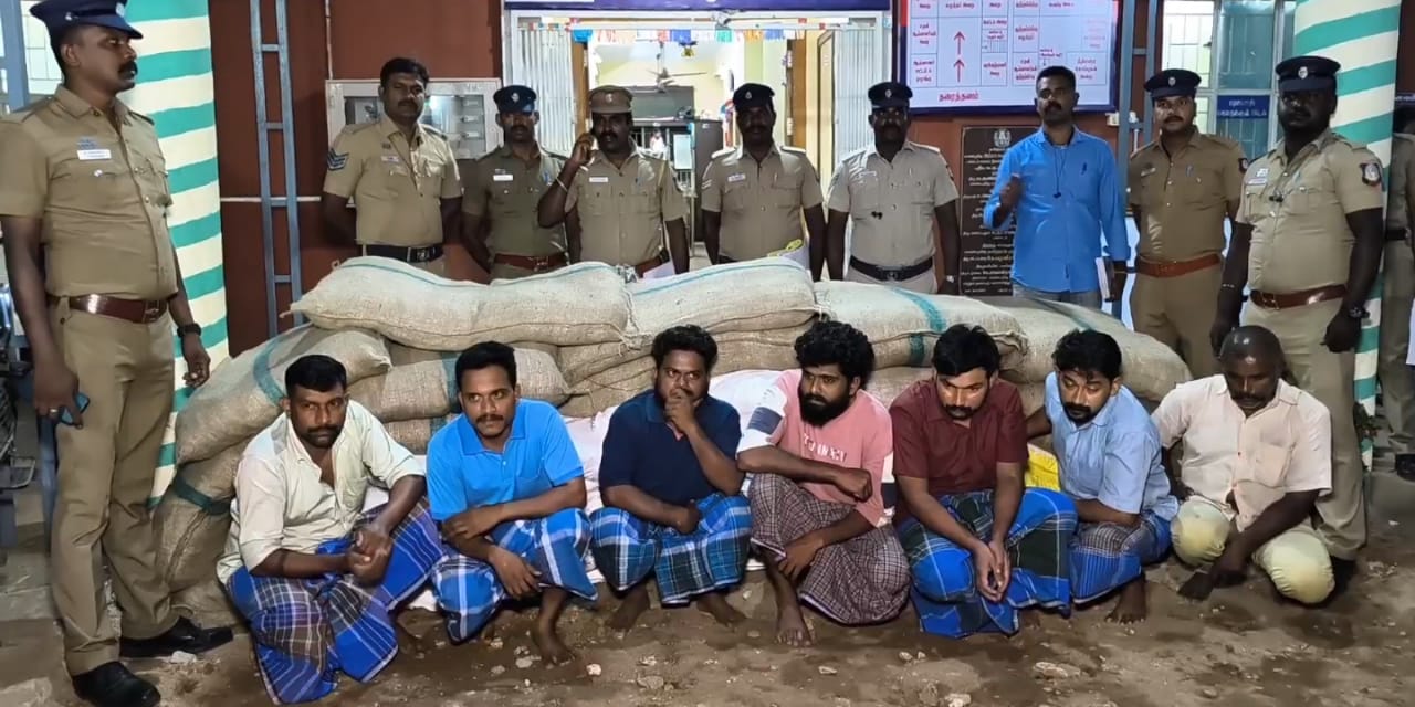 அப்போது அப்பகுதிக்கு சந்தேகத்துக்கிடமாக வந்த வேனை நிறுத்தி பார்த்தபோது அதில் குட்கா மூட்டைகள் இருந்தது தெரியவந்தது . தொடர்ந்து வேனில் குட்கா மூட்டைகளை கடத்தி வந்த சுதன் குமார் 28, சுனில் 30, வினிஷ் 28, ரதீஷ் 40, சுதீஷ் 38 மற்றும் குட்கா மூட்டைகளை எடுத்து வர உதவியாக இருந்த ராகுல் மற்றும் குட்கா பொருள்களை வாங்க காத்திருந்த பொன் வேல் ராஜன் 50 கார்த்திகை 28 ஆகிய எட்டு பேரை போலீசார் கைது செய்தனர்