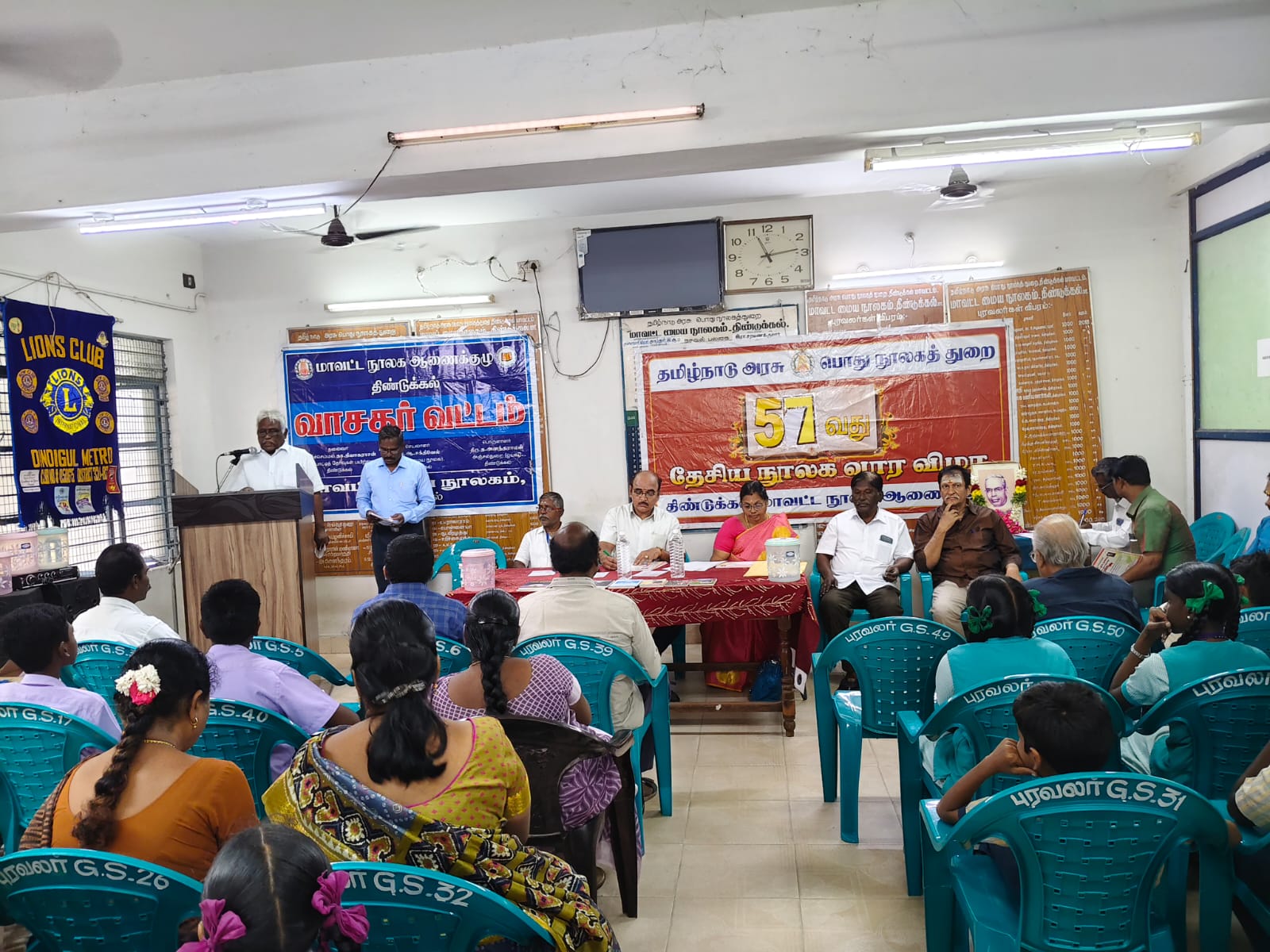 மாணவிகள் ஆசிரியர்கள் பொதுமக்கள் கலந்து கொண்டனர். பேச்சுப்போட்டி கட்டுரை போட்டியில் வெற்றி பெற்ற மாணவ மாணவிகளுக்கு திண்டுக்கல் மெட்ரோ லையஸ் சார்பாக பரிசுகள் மற்றும் சான்றுகள் வழங்கப்பட்டன.